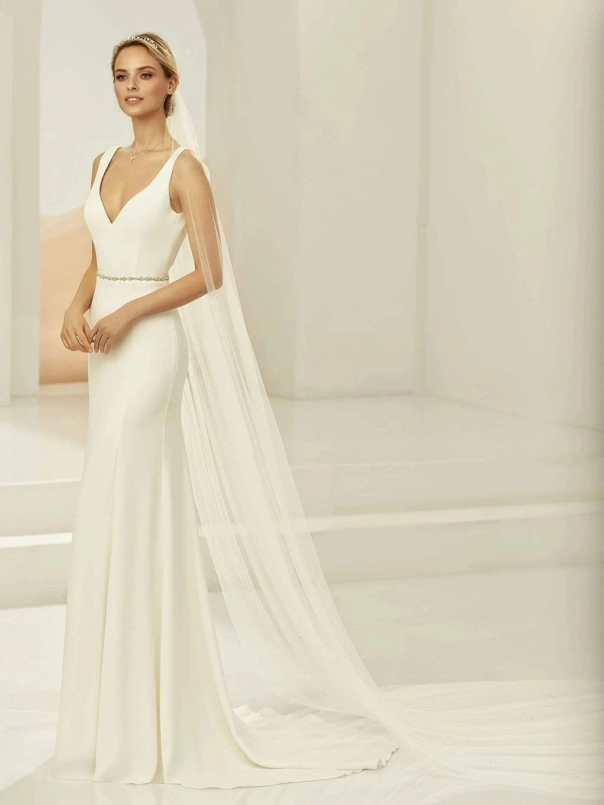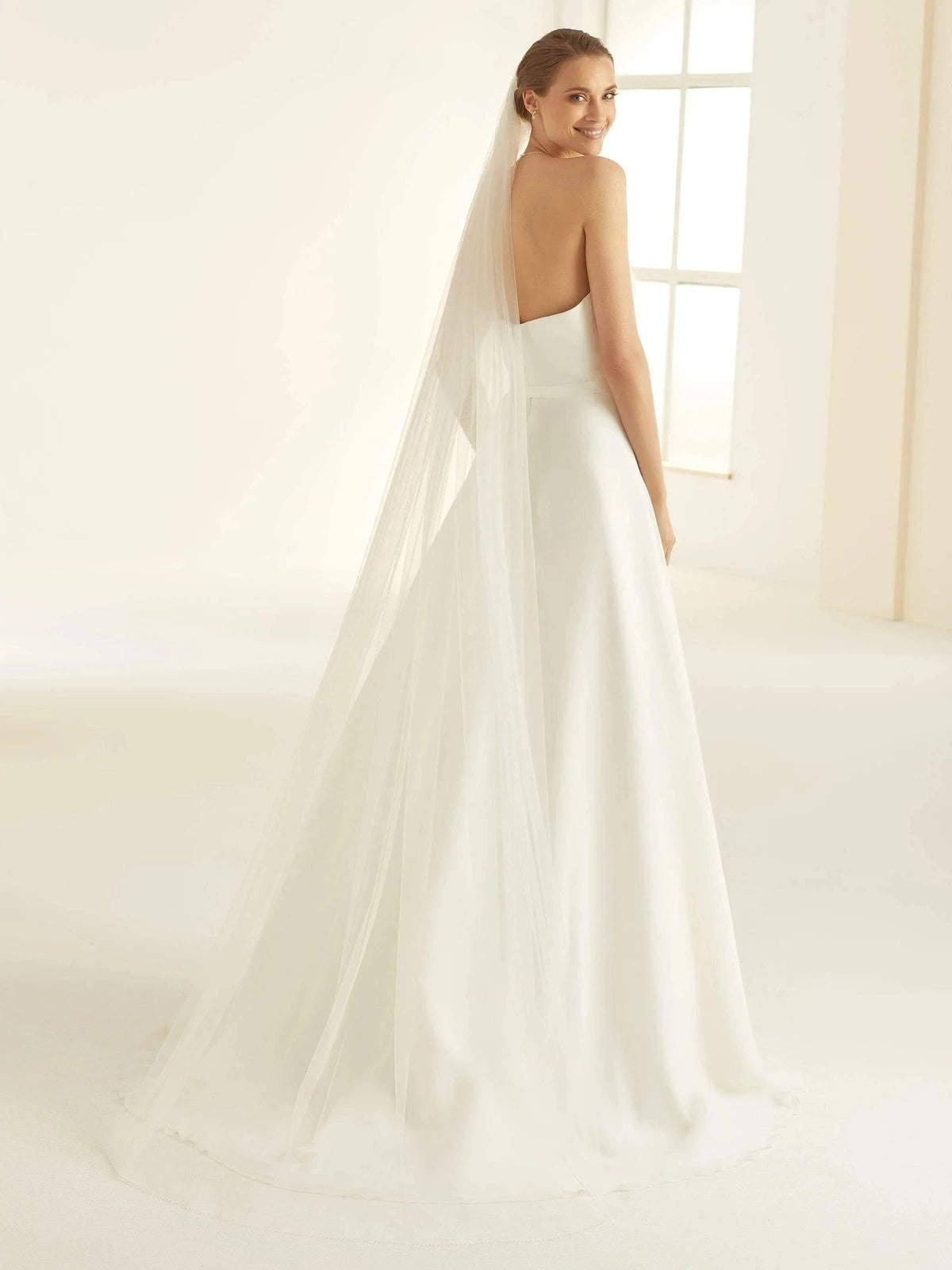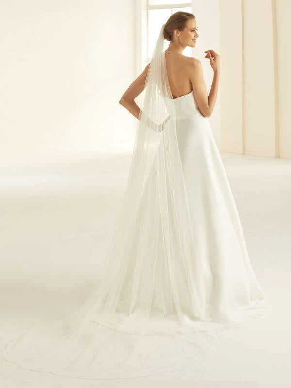 Single Tier Cathedral Veil, Cut Edge with Crystals S382