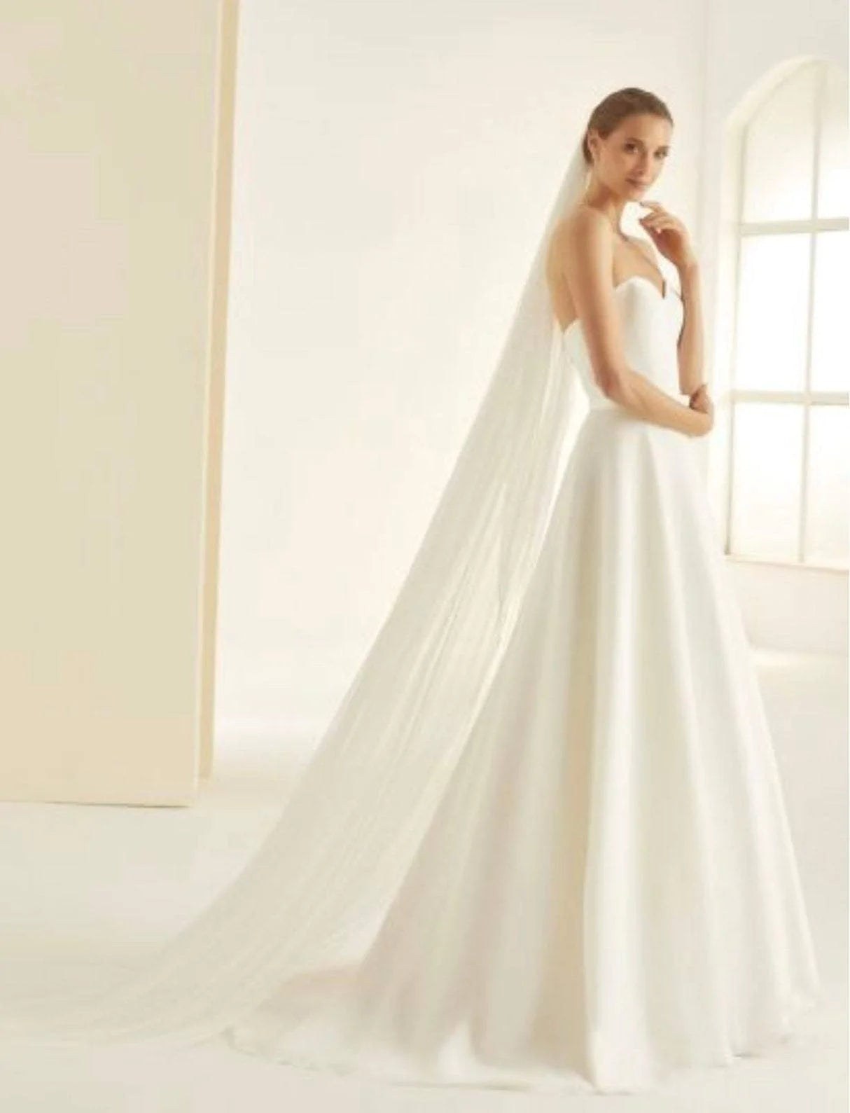 Single Tier Fingertip Wedding Veil, Satin Edge, Soft Ivory or White Tulle S7