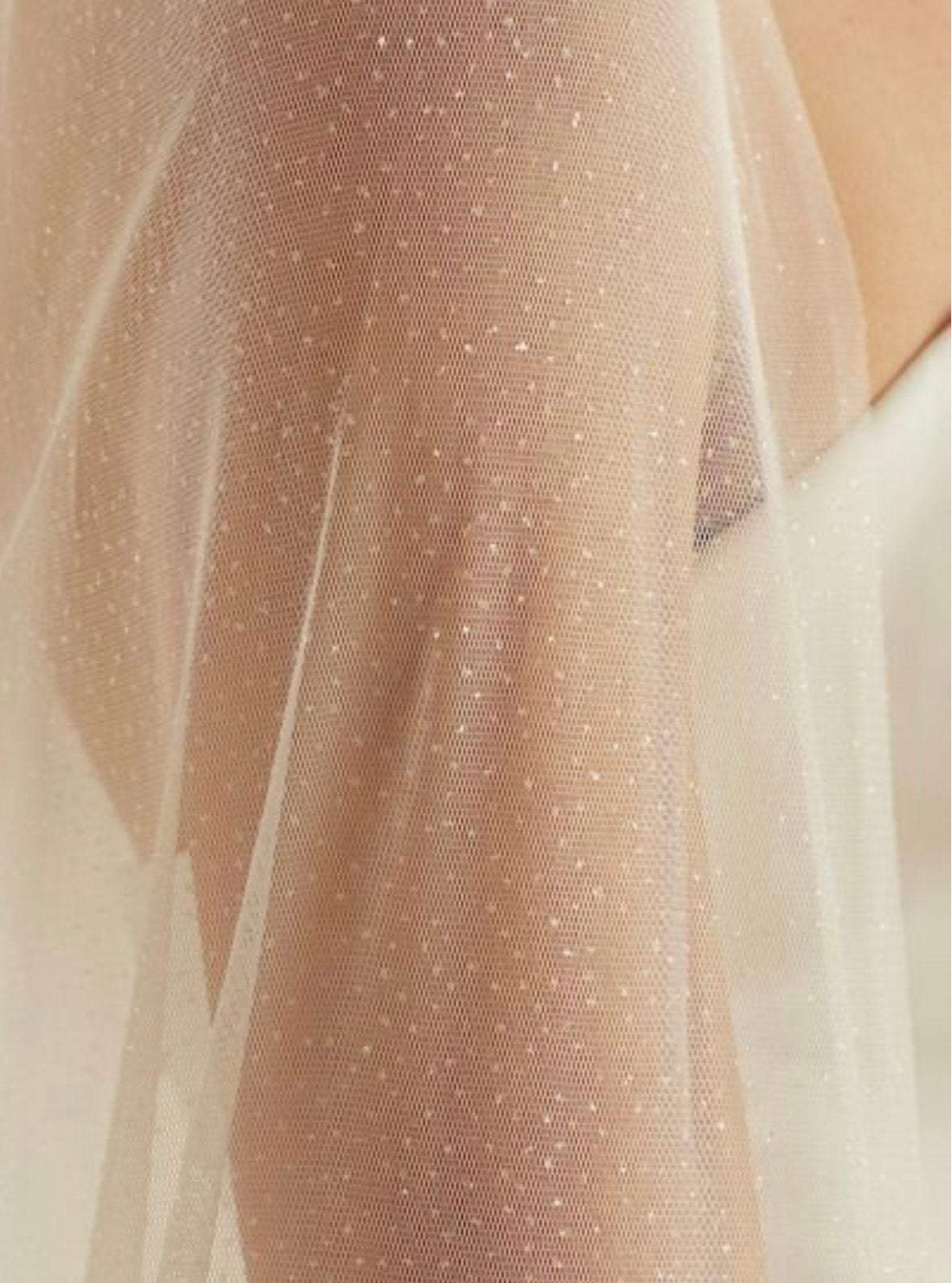 Single Tier Glitter Tulle Wedding Veil, Floor Length, Cut Edge S361