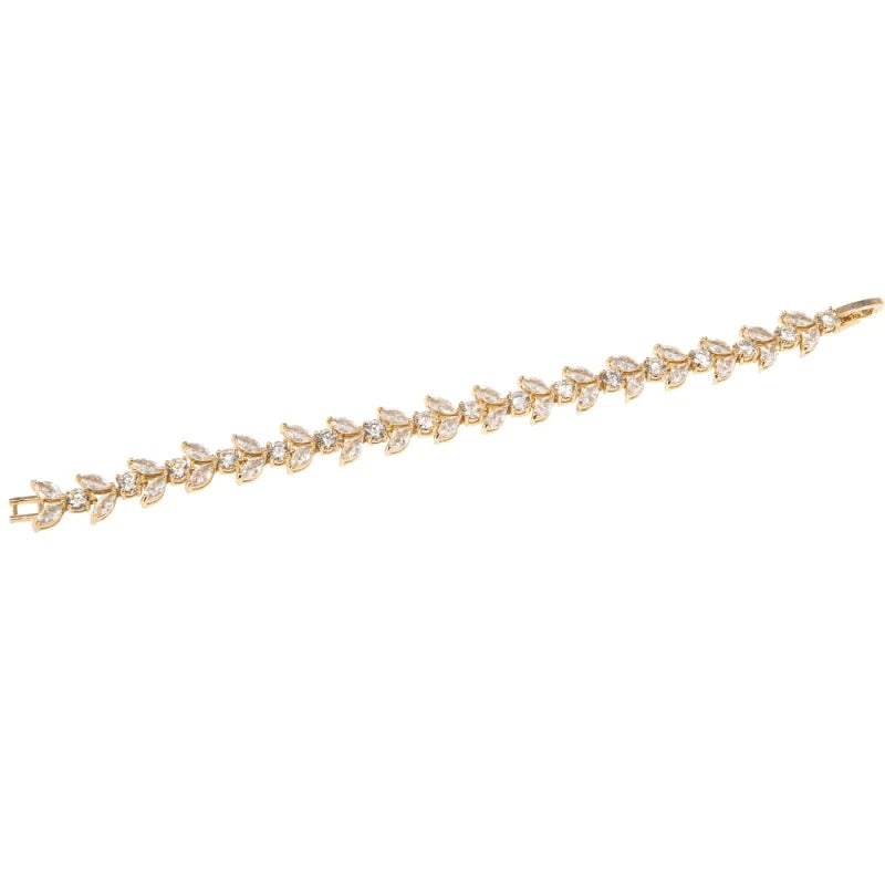 A beautiful bracelet sparkling with marquise clear cut crystals that glisten from every angle. A perfect finishing touch for the bride to complete her bridal look. Would also be perfect for Bridesmaids, Maid of Honour, or as a gift for the Mother of the Bride. This is such a gorgeous gold bridal bracelet to make you sparkle all day long.