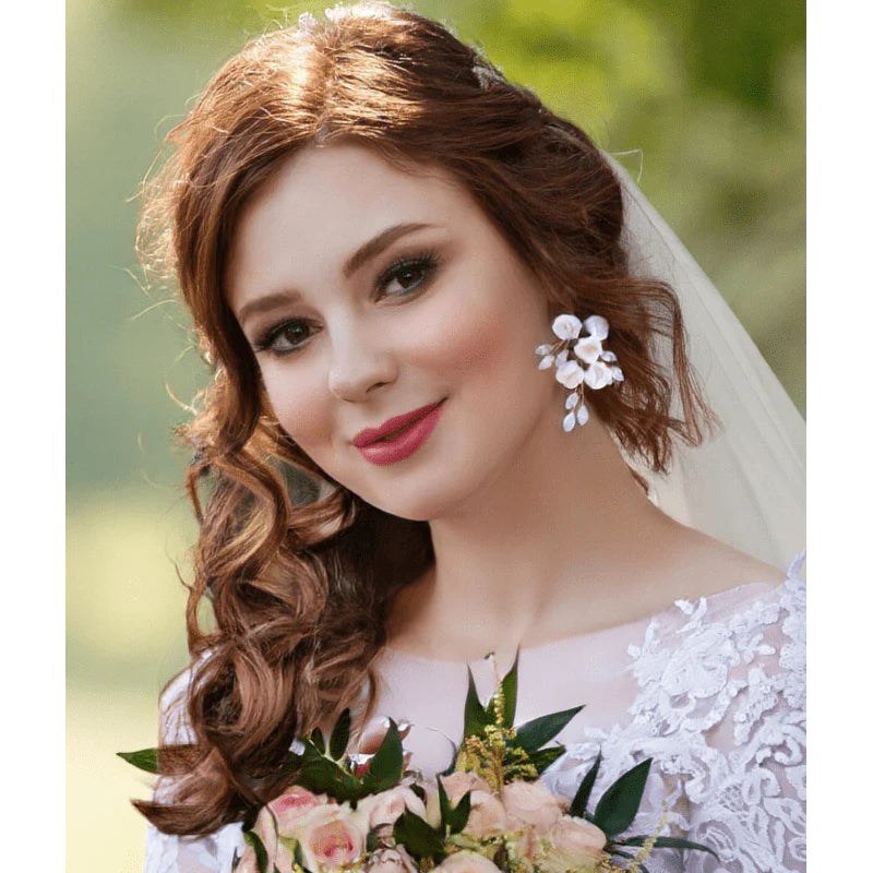These beautiful bridal earrings will add a touch of breathtaking femininity to your bridal look. Beautifully hand crafted with a decadence of delicate ceramic flowers with glistening marquise clear crystals. A truly opulent accent for your magical wedding day, or choose these pretty earrings to add the perfect finishing touch to your special occasion outfit.