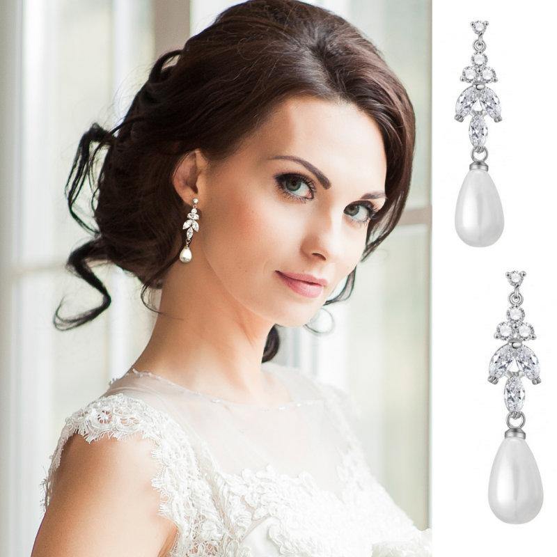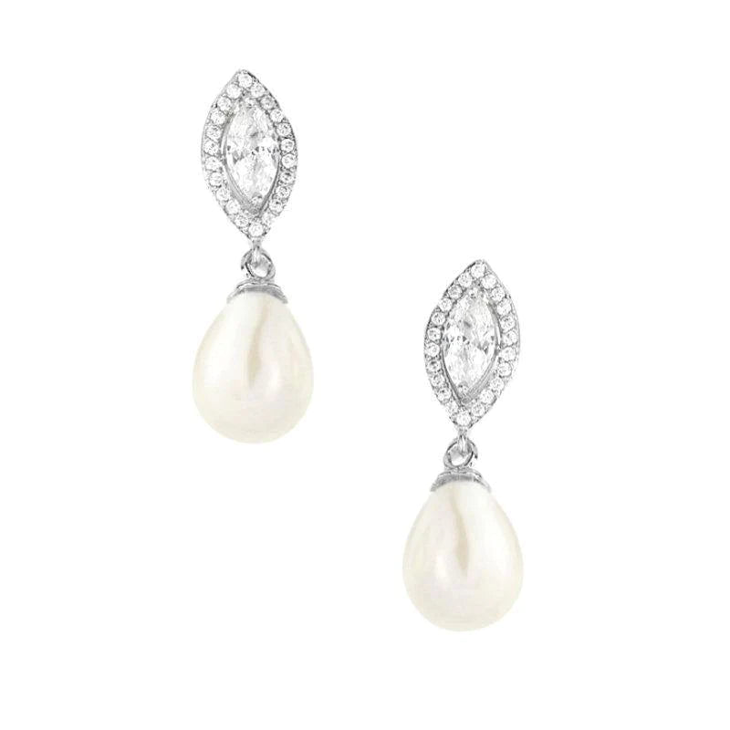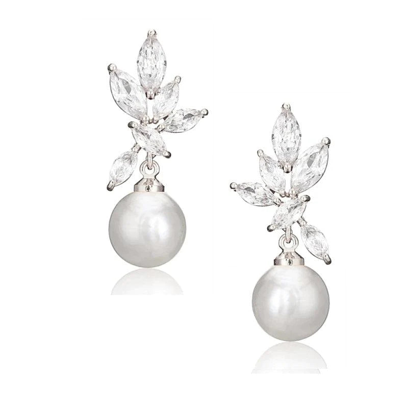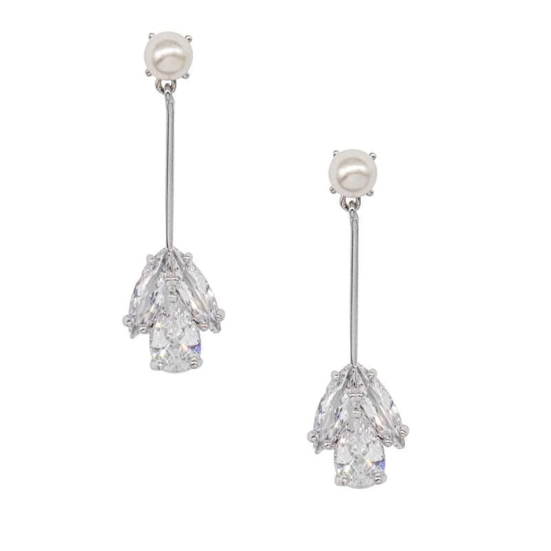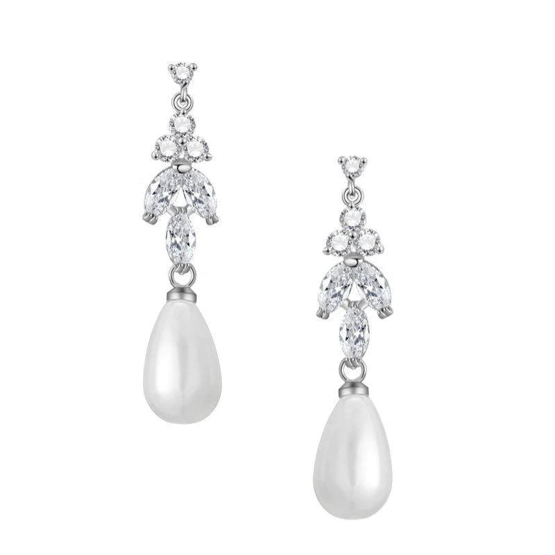 Add Crystal and Pearl Drop Wedding Earrings, Silver 7436 to the cart