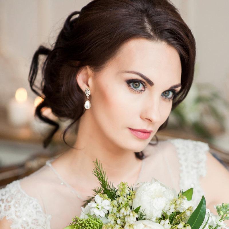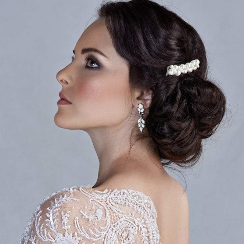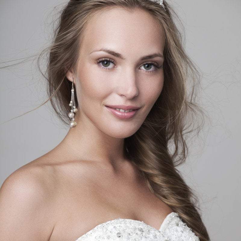 Add Crystal and Pearl Drop Wedding Earrings, Silver 7553 to the cart