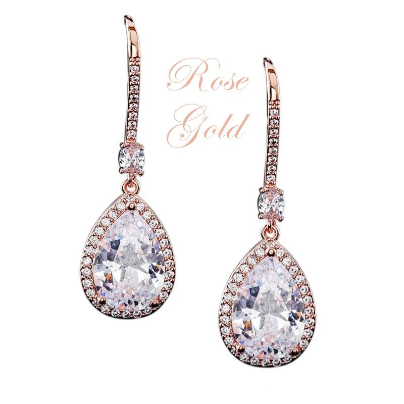 Add Brides Rose Gold Crystal Wedding Earrings 7297 to the cart