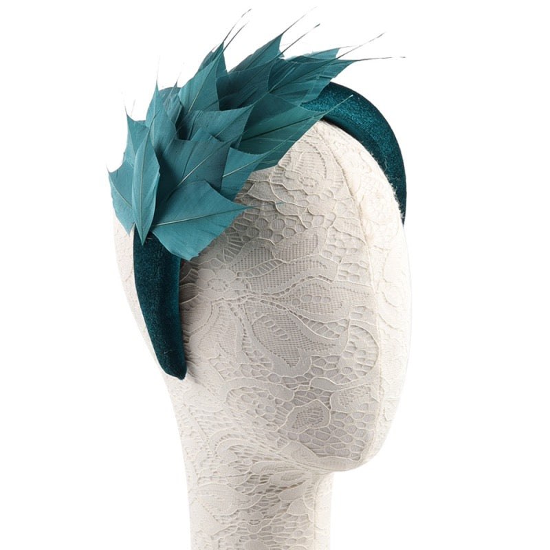 Regular price £63.71A stunning luxury feather fascinator headband. This breathtaking headpiece is rich with a luxurious velvet headband embellished with striking Emerald Green coloured feathers. This certainly is a headdress which is sure to delight and a perfect accessory to complete your outfit for the races, as a wedding guests or mother of the bride.