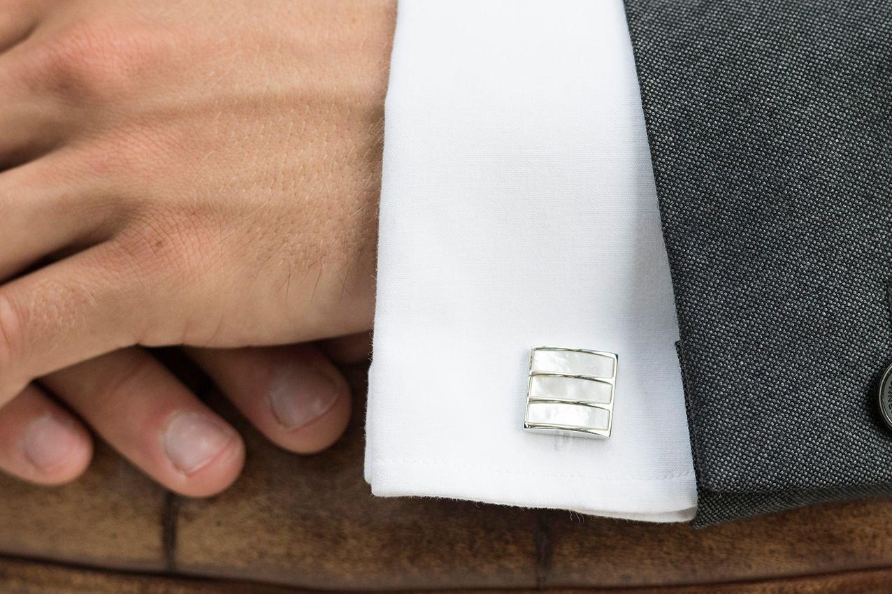 These fabulous cufflinks are handcrafted from a mixture of rhodium and mother of pearl.