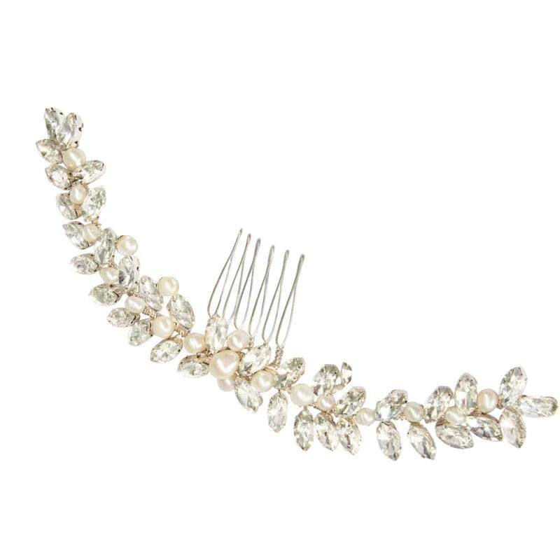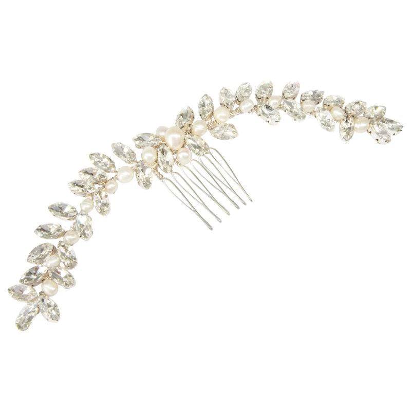 Brides Chic Pearl Hair Comb, Crystals, Silver 7404