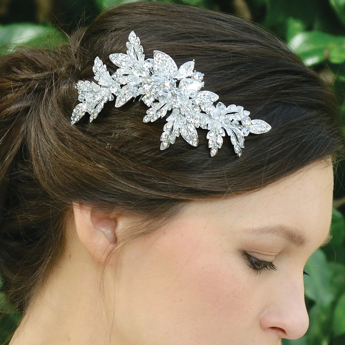 Floral Wedding Hair Comb, Silver with Crystals SASKIA