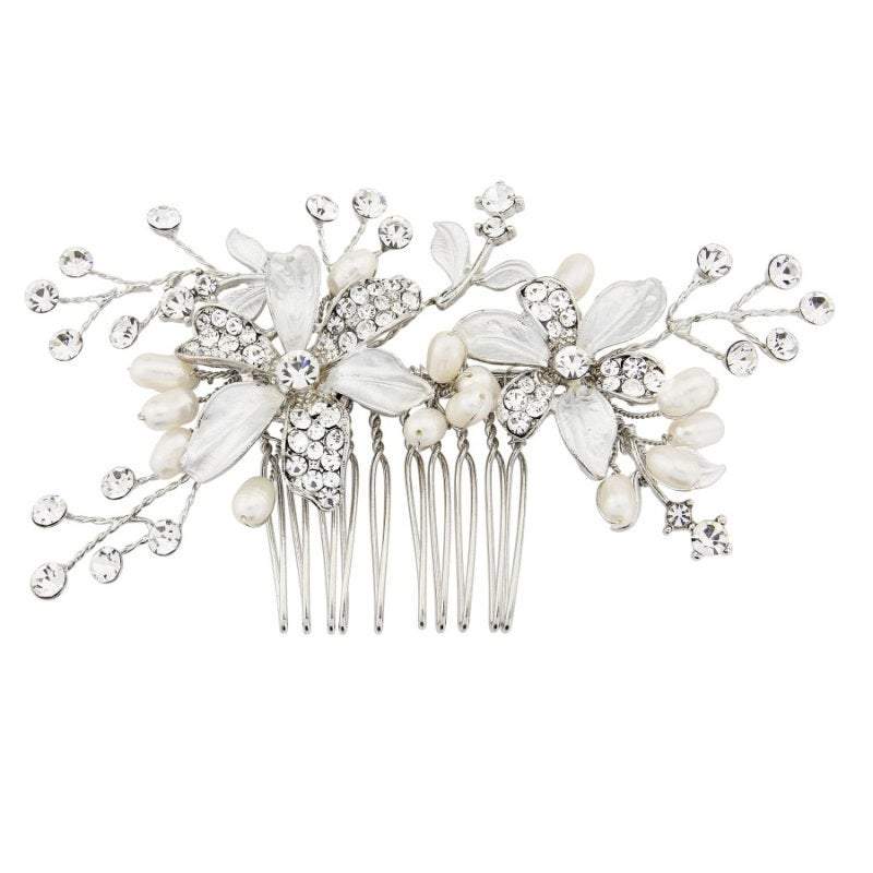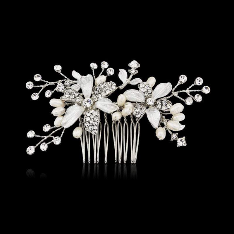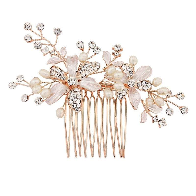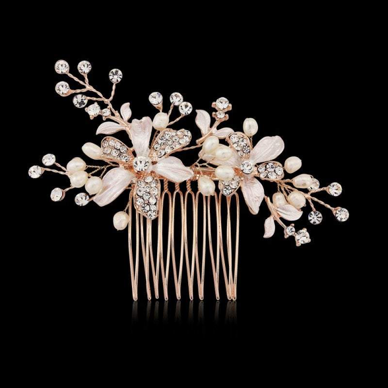 Floral romance hair comb - Hand wired comb embellished with high quality clear crystals and freshwater pearls on a rose gold or silver finish.
