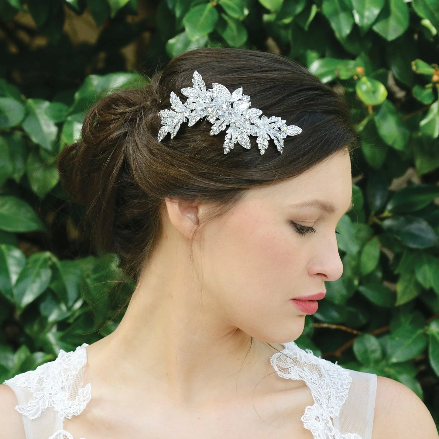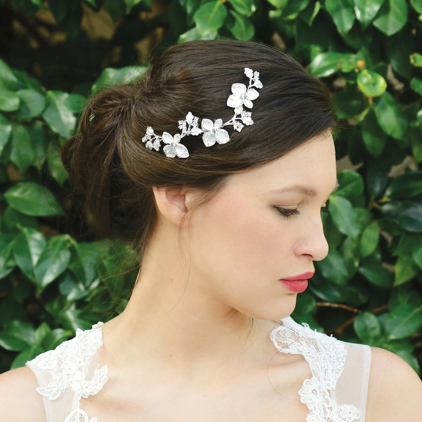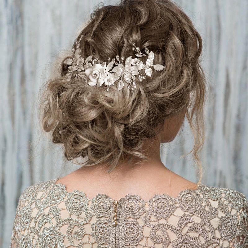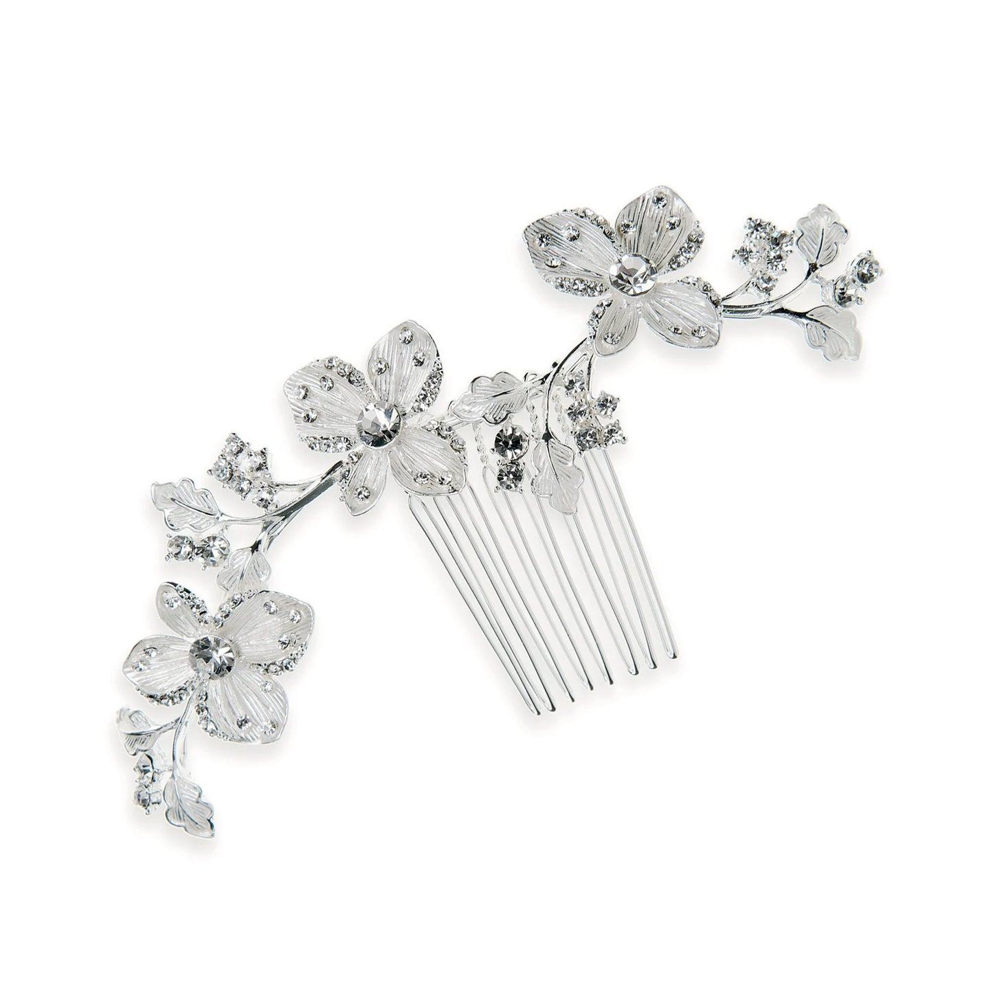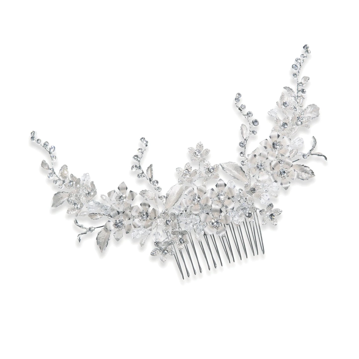 Add Floral Wedding Hair Comb, Silver with Crystals SASKIA to the cart