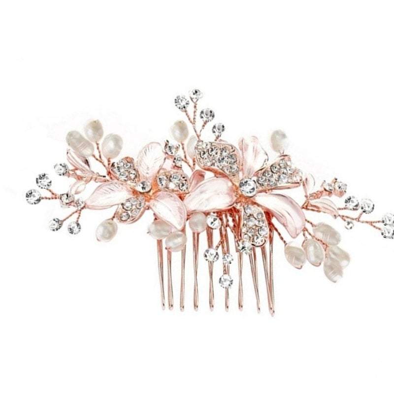 Add Rose Gold Bridal Hair Clip with Crystals, SIREN to the cart