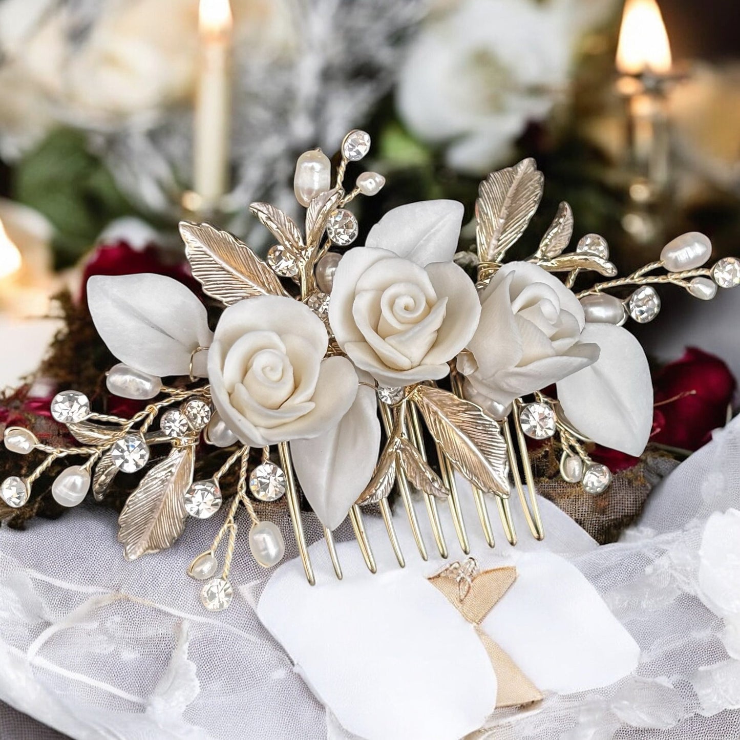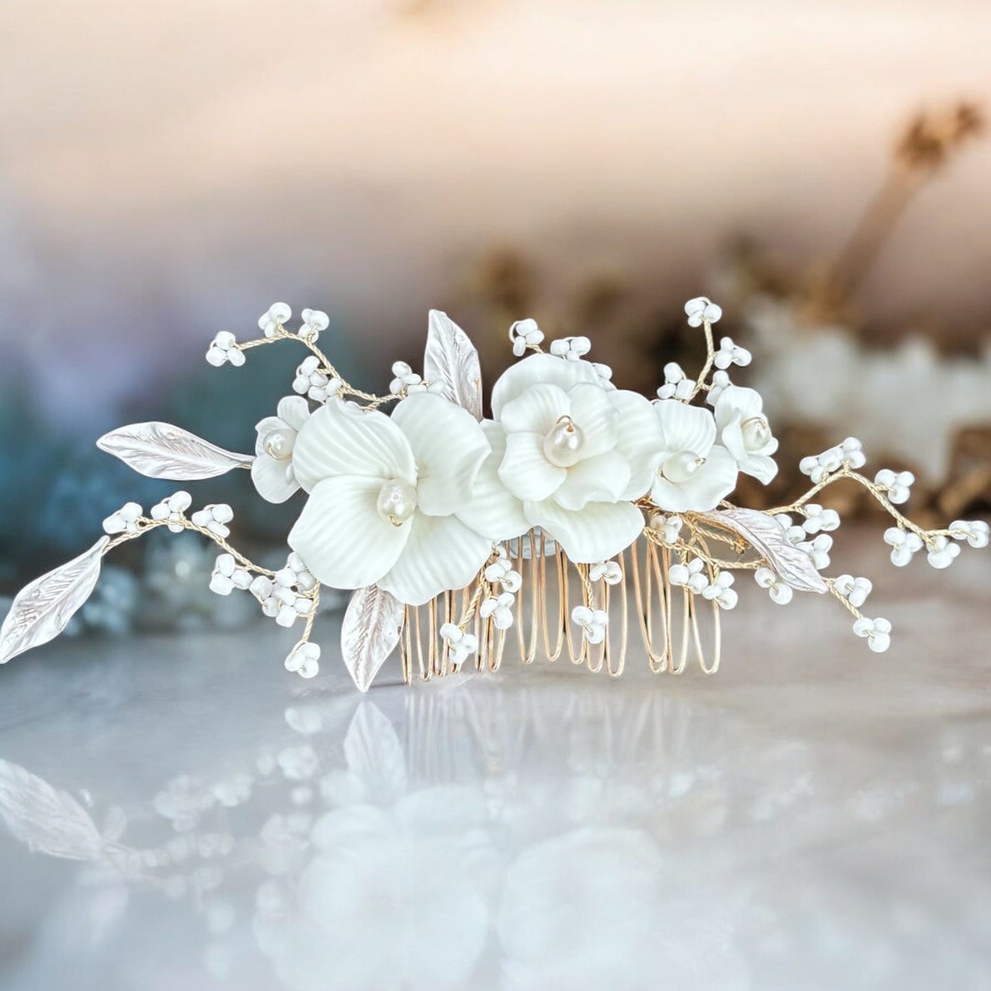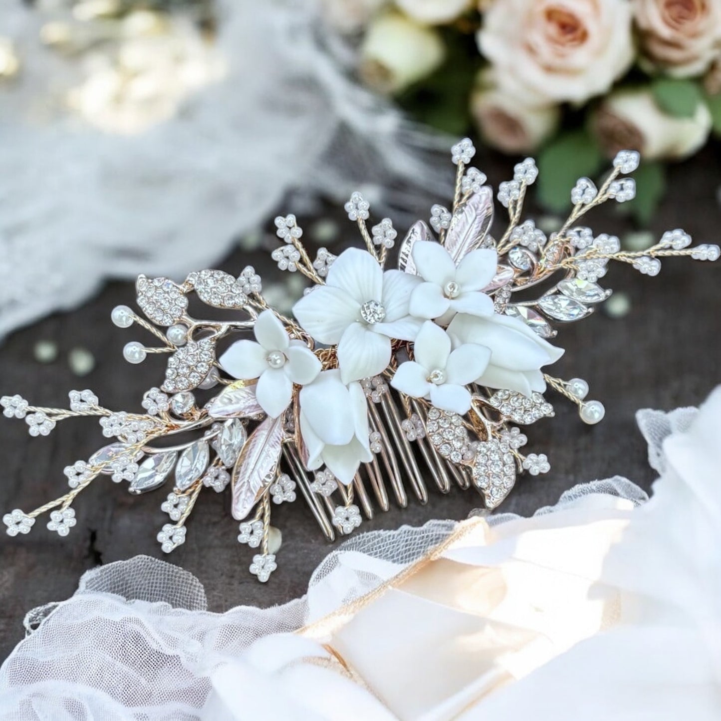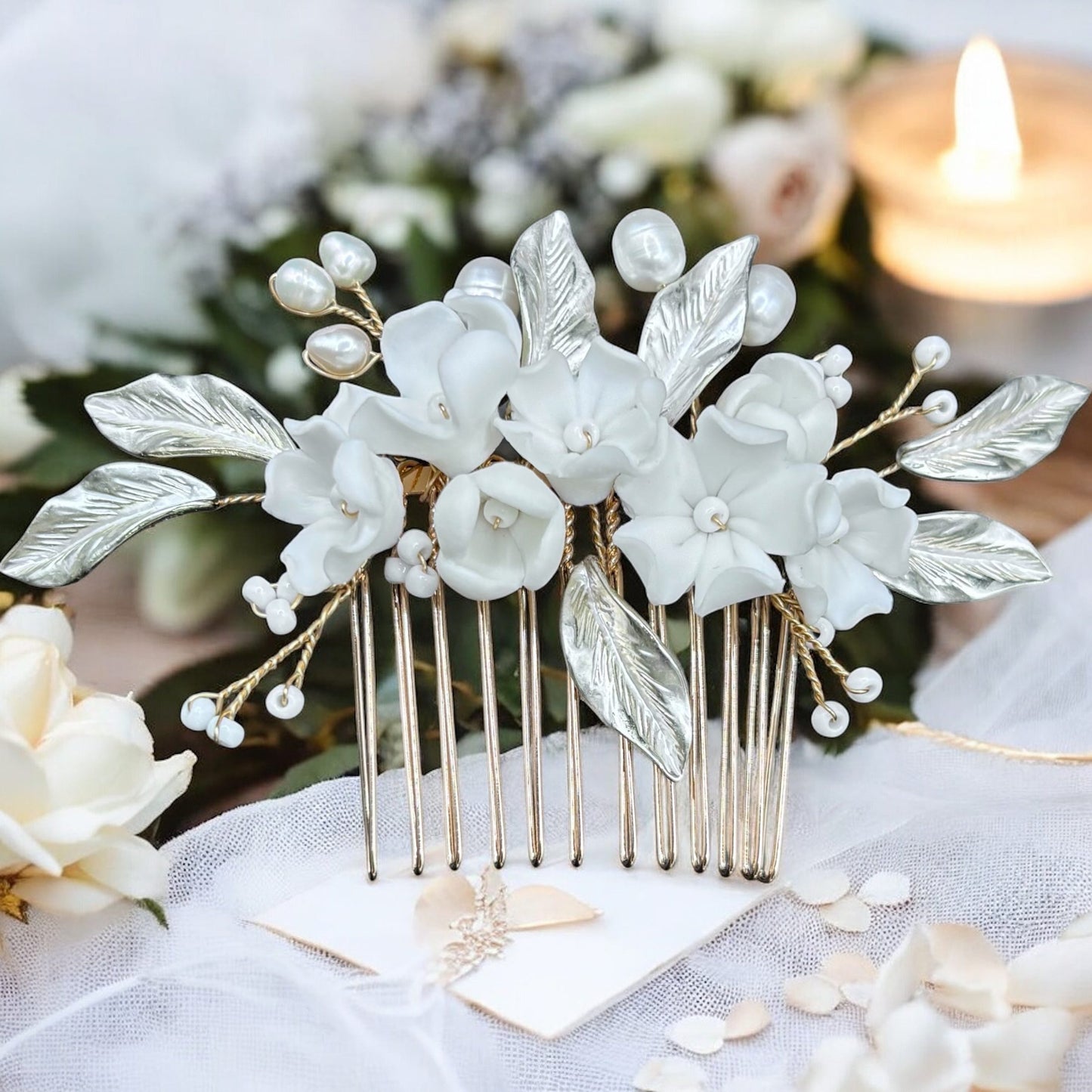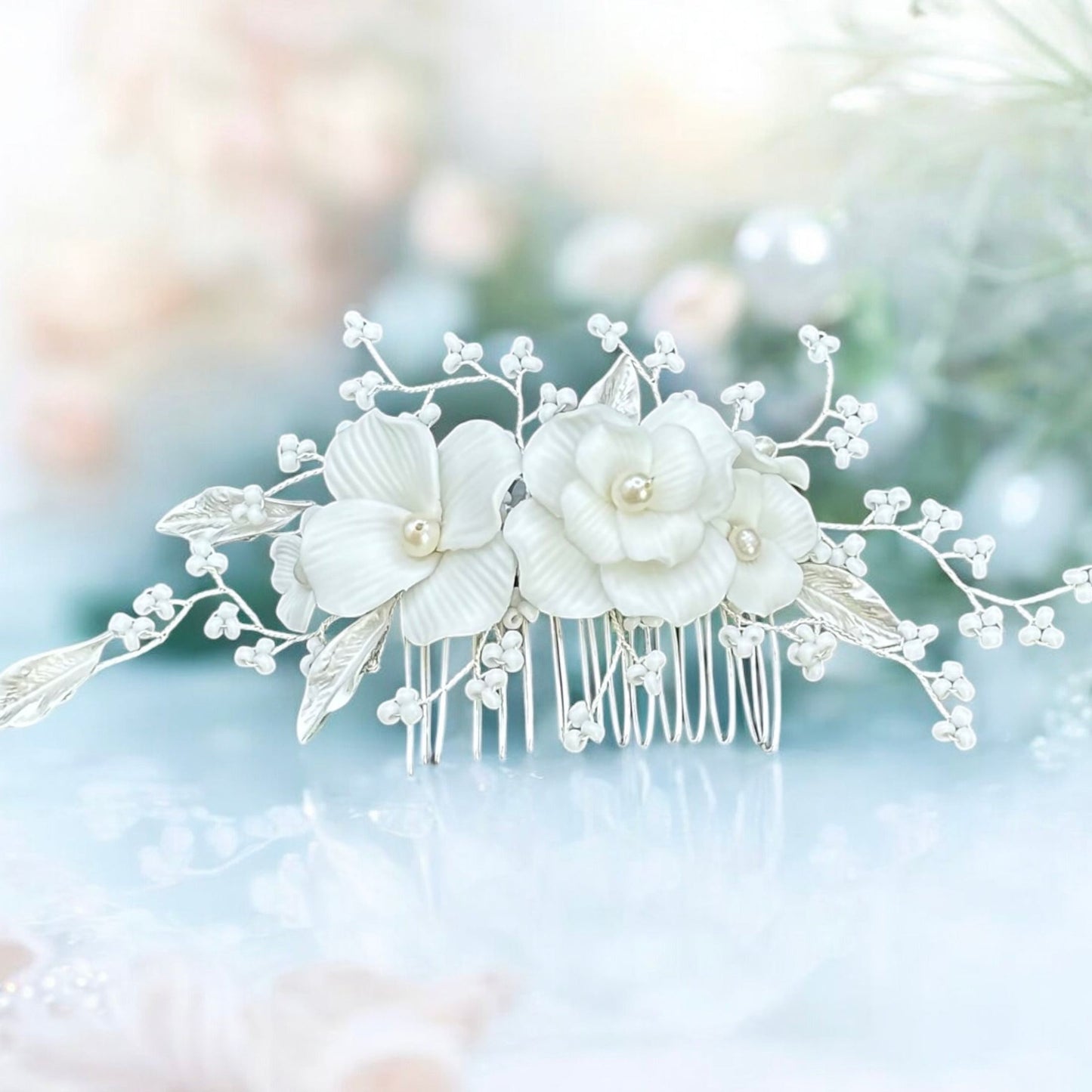 Add Bridal Hair Comb with Floral & Pearl Embellishments TT1079 to the cart