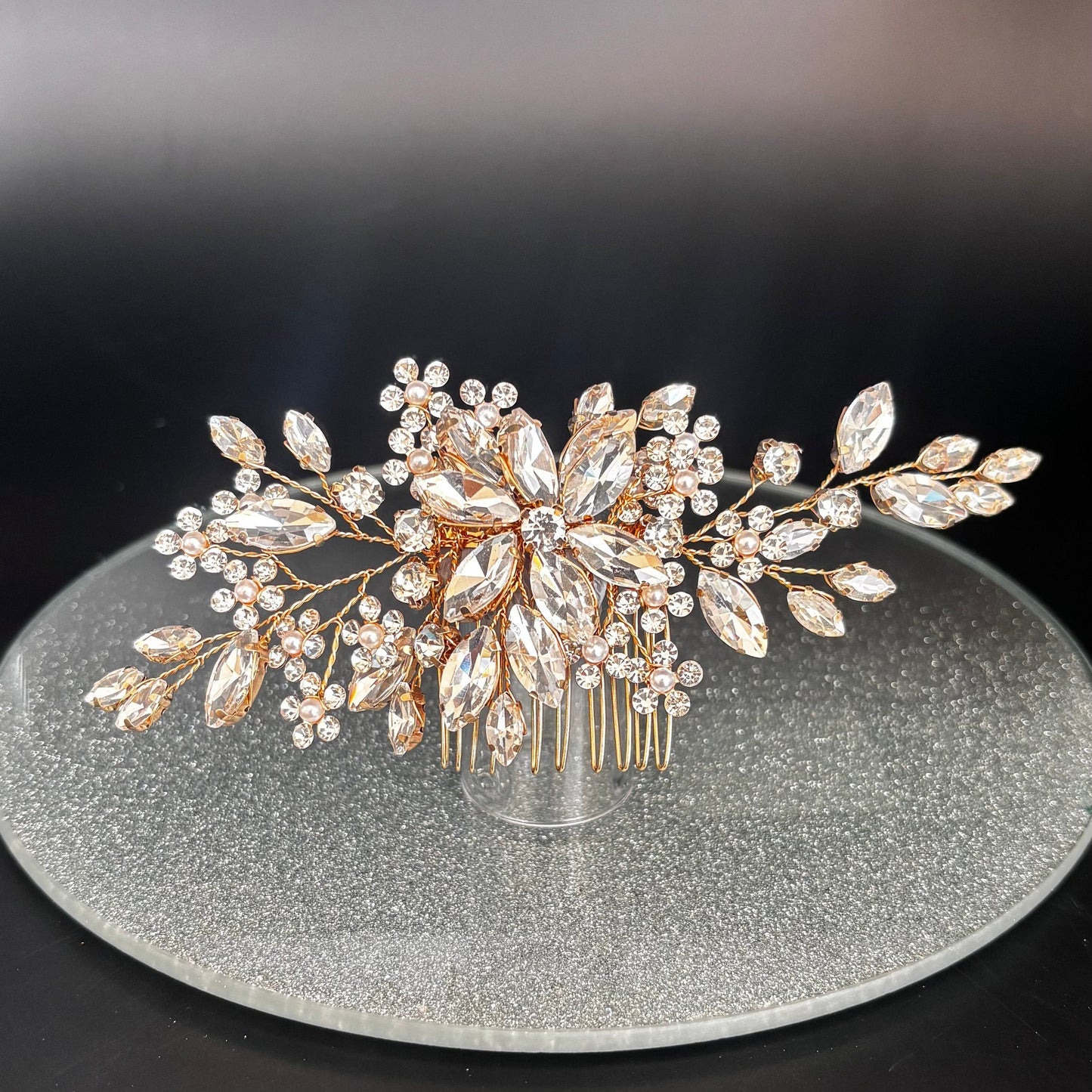 Add Brides Rose Gold Hair Comb with Crystal & Pearls, TT1080 to the cart
