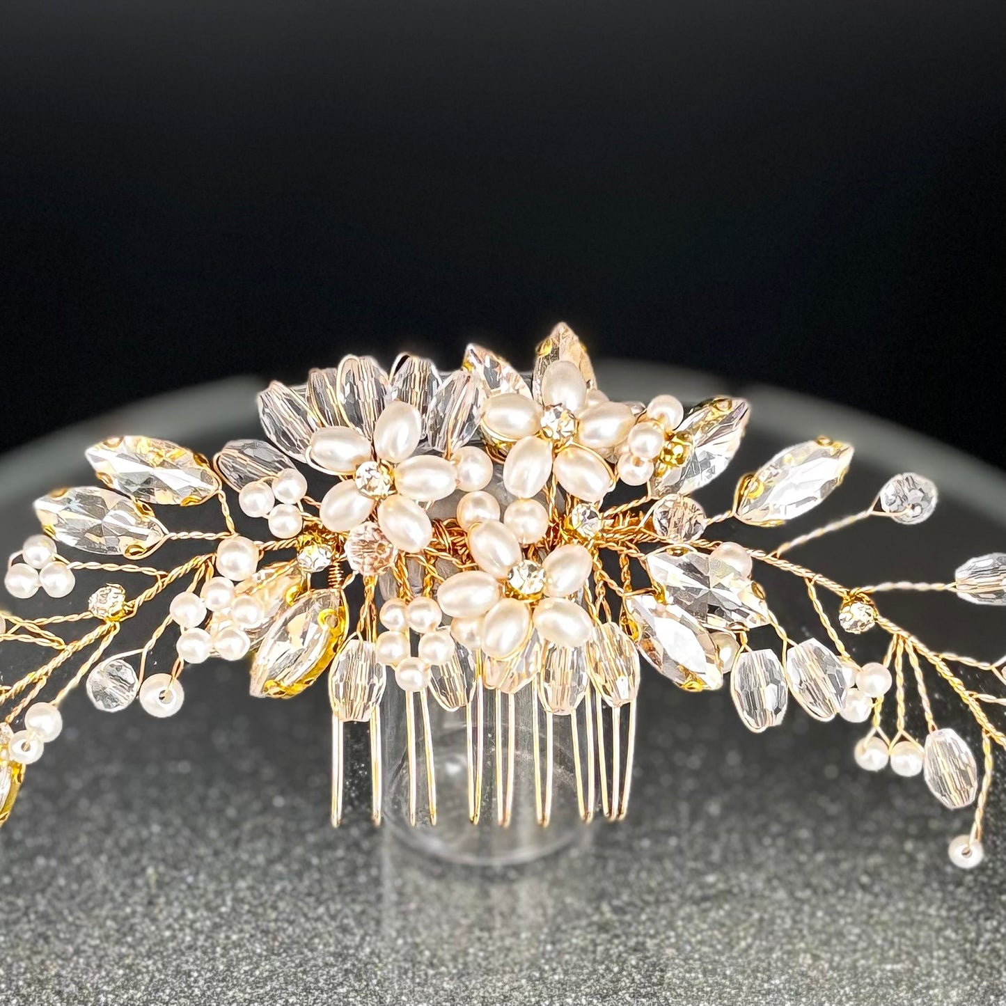 Add Gold Bridal Hair Comb with Crystals & Pearls TT1056 to the cart