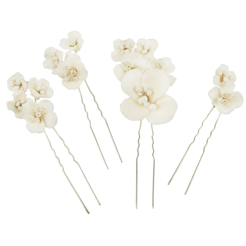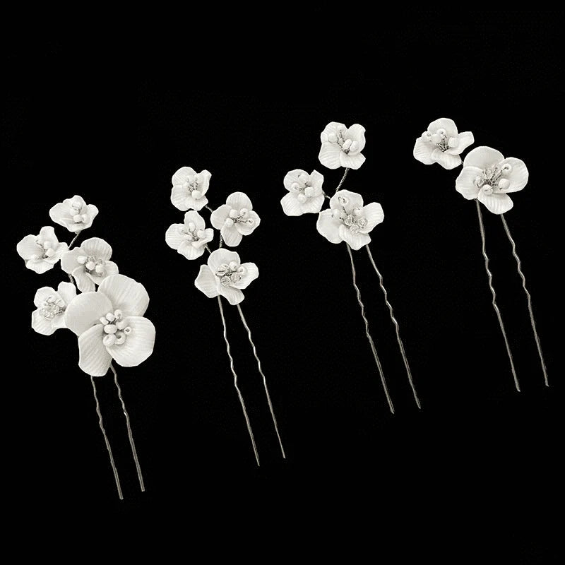Floral Bridal Hair Pins Set, Ivory Ceramic Flowers, 9766