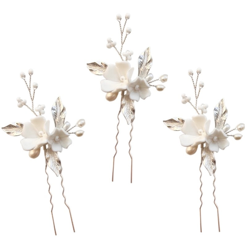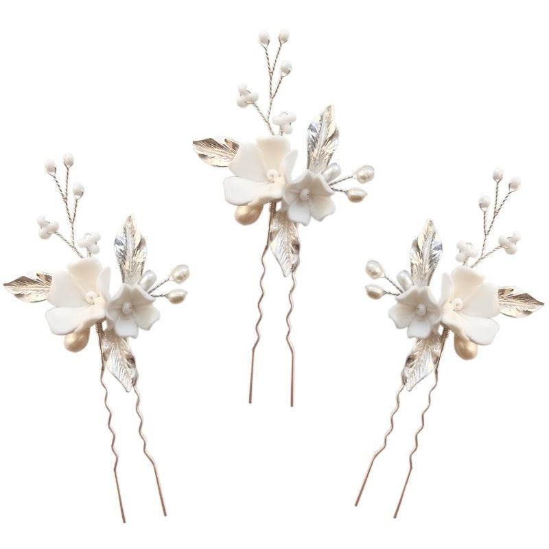 Bridal Hair Pins with Flowers and Freshwater Pearls