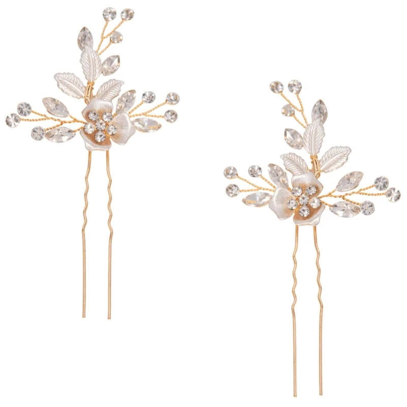 Set of 2 Gold Bridal Hair Pins with Crystals