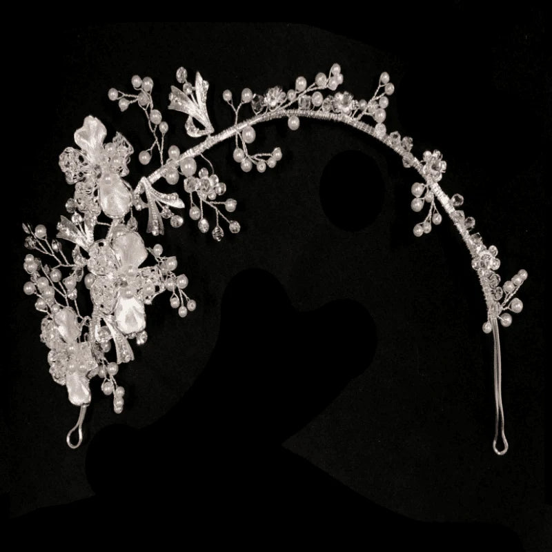 Regular price £63.75A beautiful Brides Crystal Hair Vine to bring radiance to your bridal style on your special day. This stunning floral crystal hair vine is embellished with glowing crystals, and delicate ivory pearls, amongst Metallic silver leaves. The intensely set crystal work is offset beautifully by a sparkly silver vine. This silver crystal Wedding hair vine is perfect for celebrating a match made in heaven.