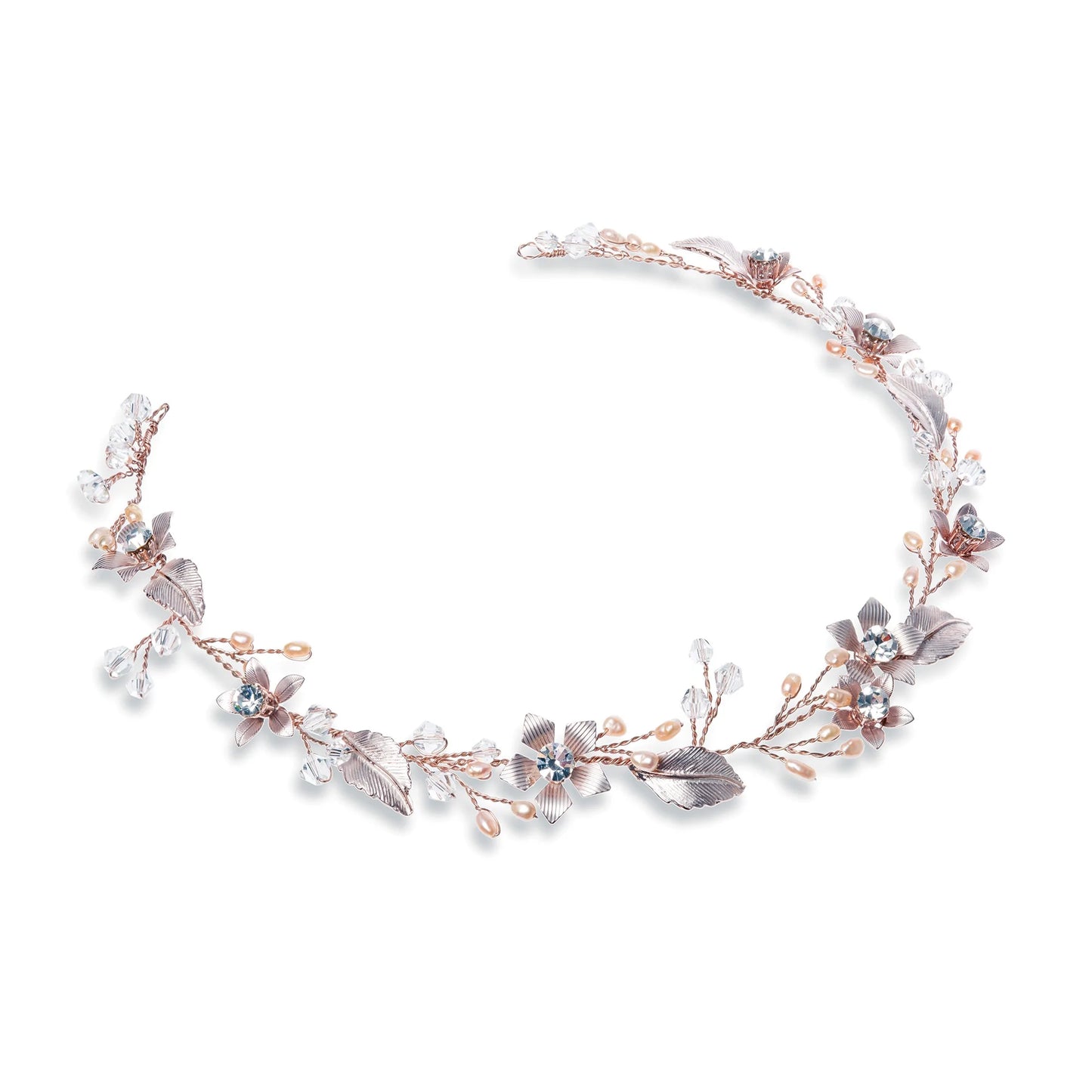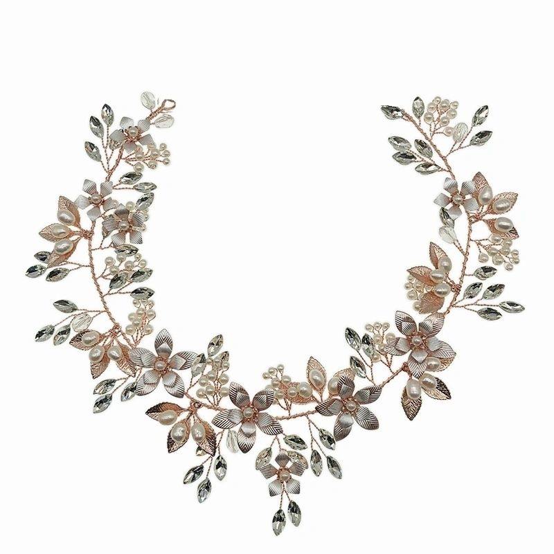 Add Rose Gold Wedding Hair Vine with Crystals and Pearls, 7317 to the cart