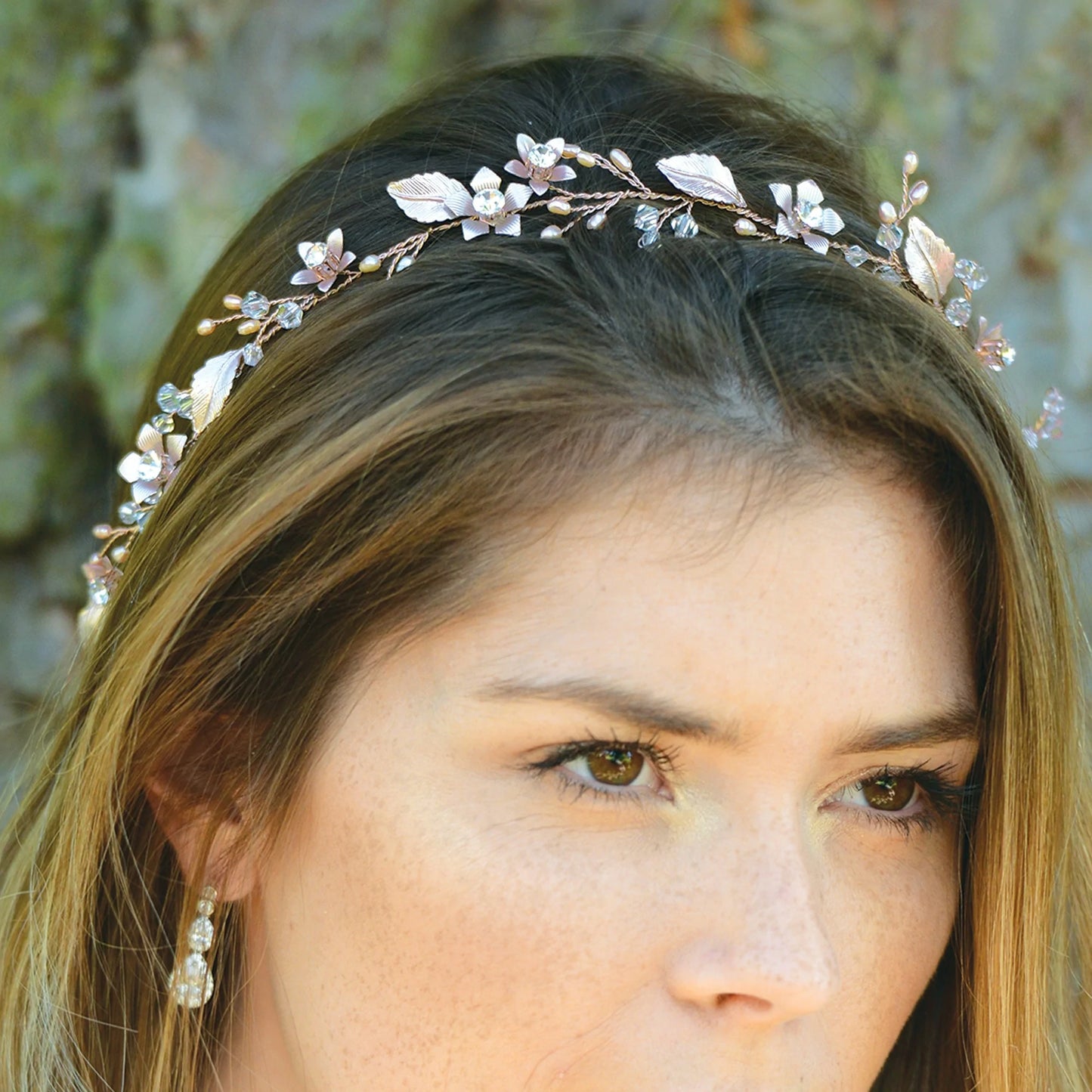 Add Rose Gold Bridal Hair Vine with Crystals By Ivory & Co, FIRENSA to the cart
