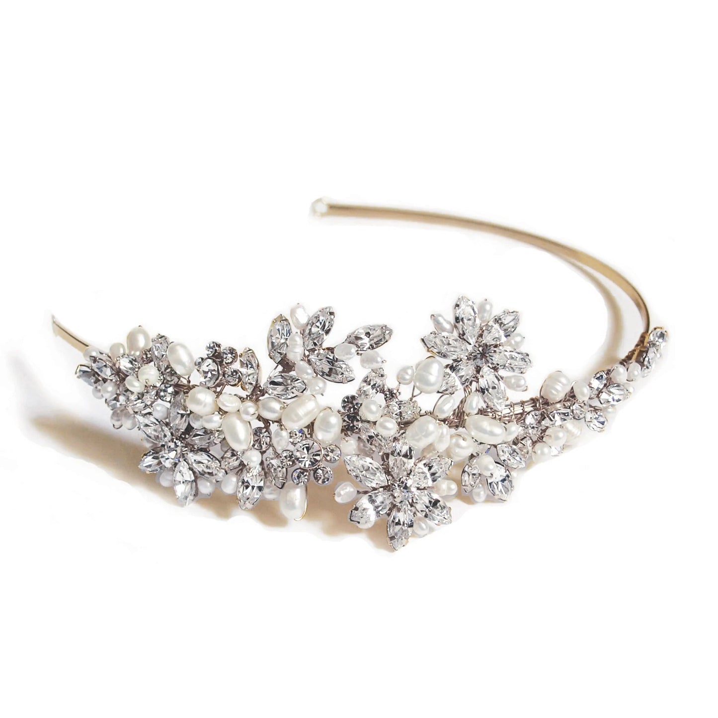 At Topknot Tiaras & Veils, our collection of bridal headbands are designed to add elegance and timeless beauty to your wedding day. From pearl bridal headbands to crystal wedding headbands, each headpiece is carefully handcrafted to complement your hairstyle and gown. Our versatile headbands can be worn with or without a veil, making them a perfect choice for brides, bridesmaids, and flower girls. Discover modern headbands, boho bridal crowns, and vintage-inspired designs that add just the right touch of sparkle and sophistication.