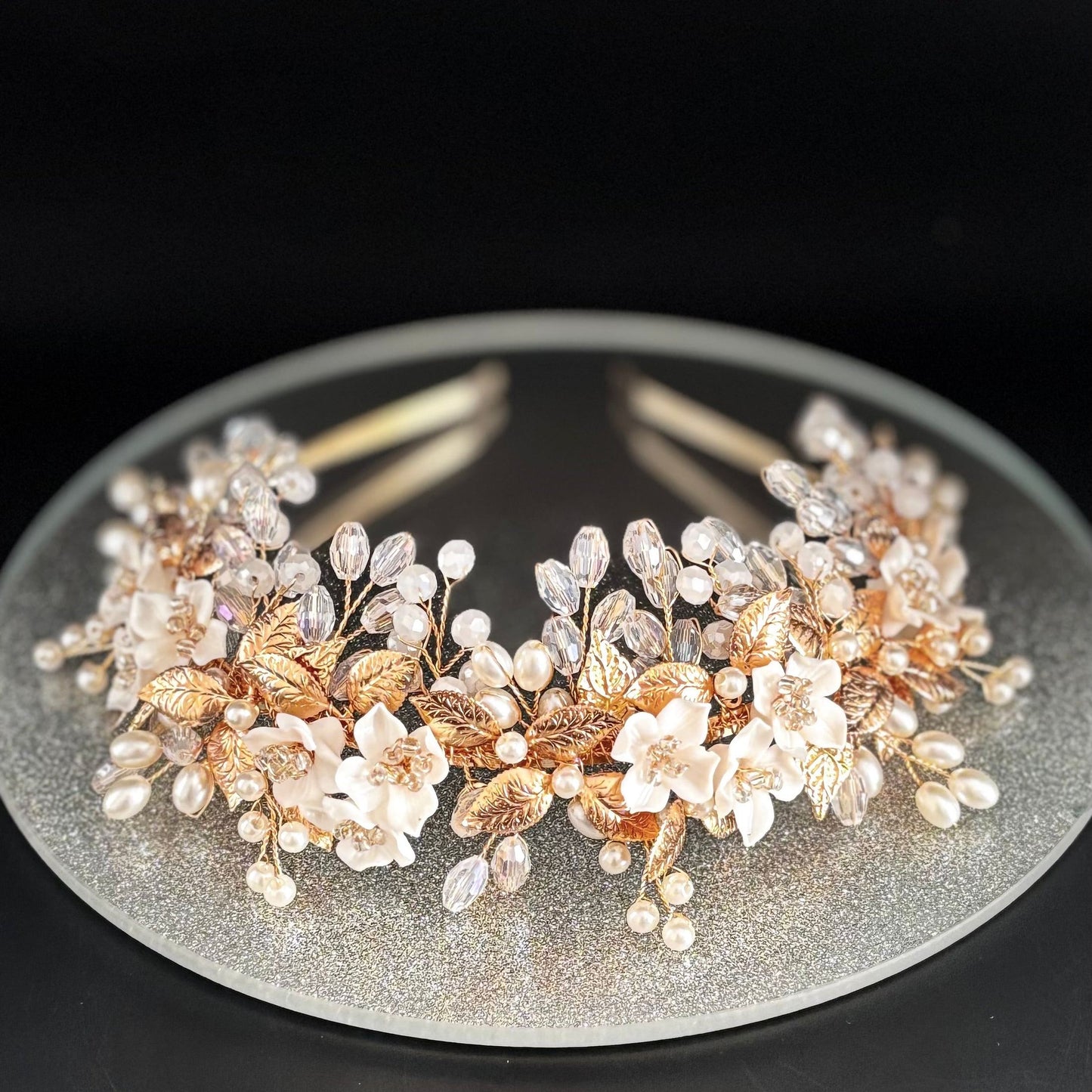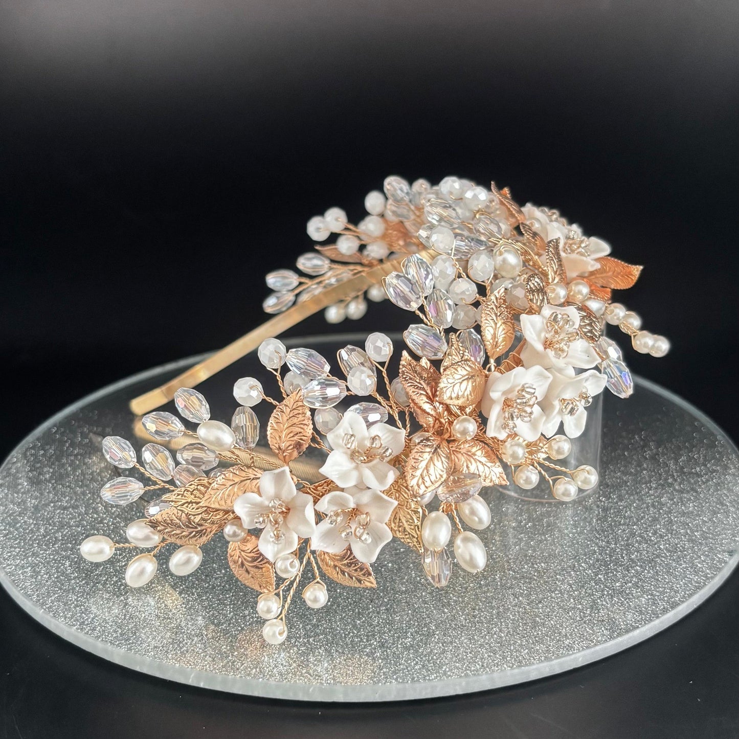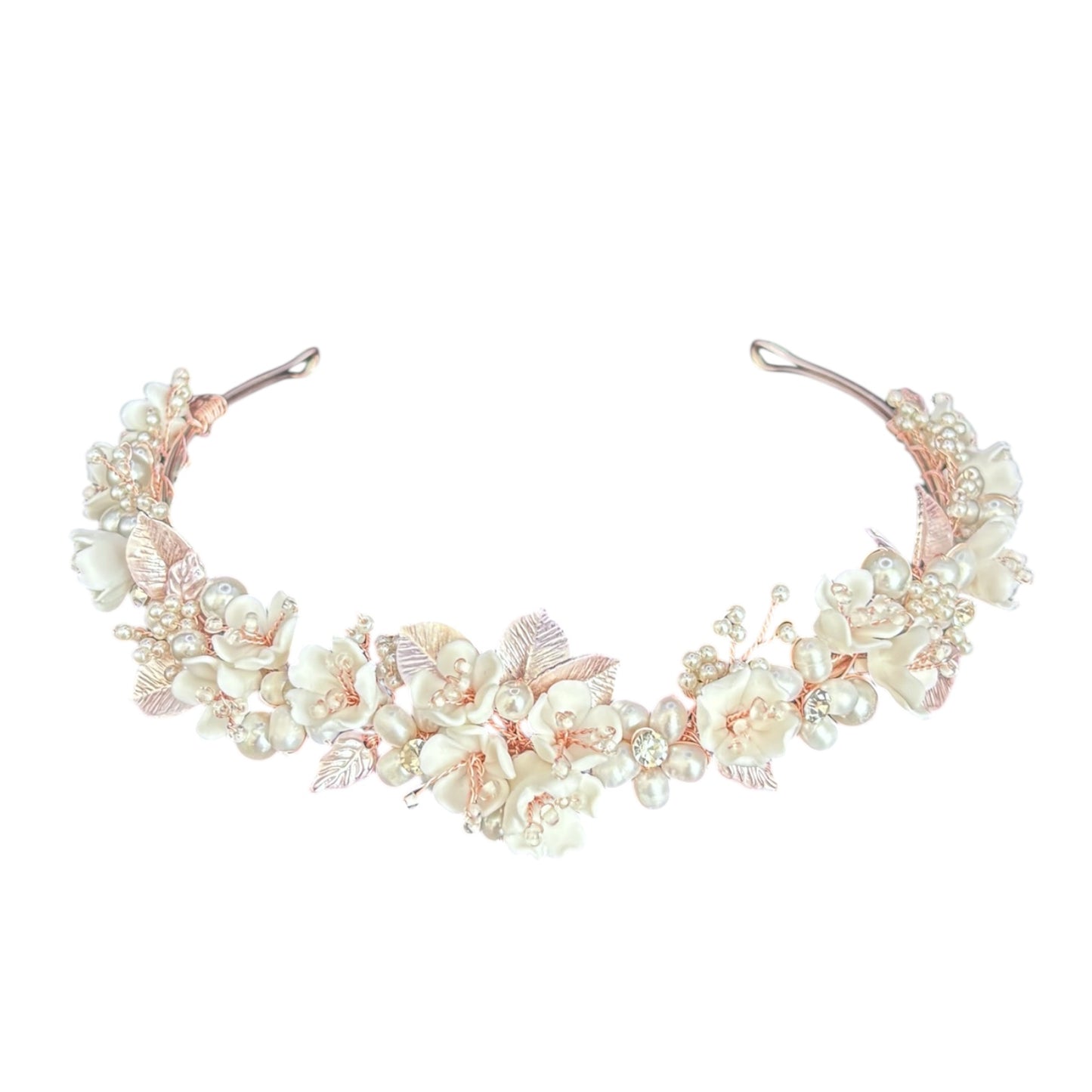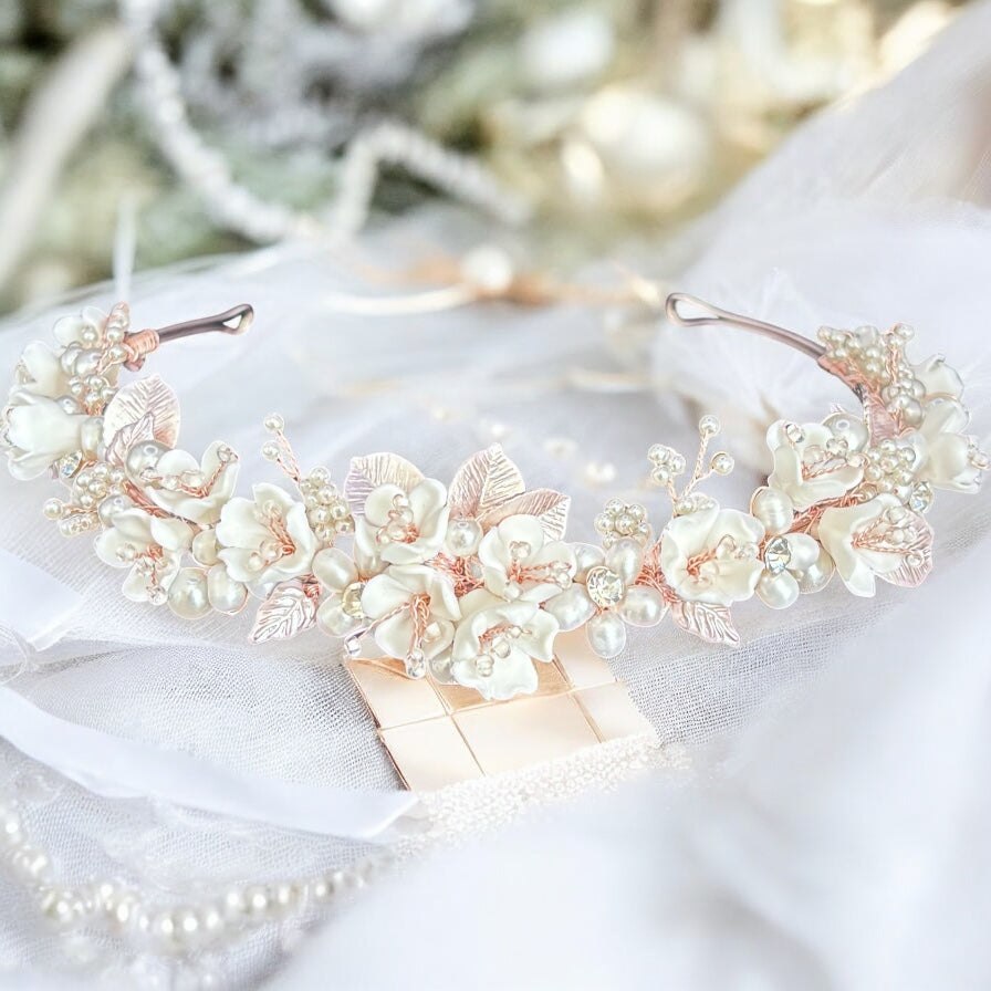 Add Rose Gold Floral Bridal Headband with Crystals and Pearls TT1059 to the cart