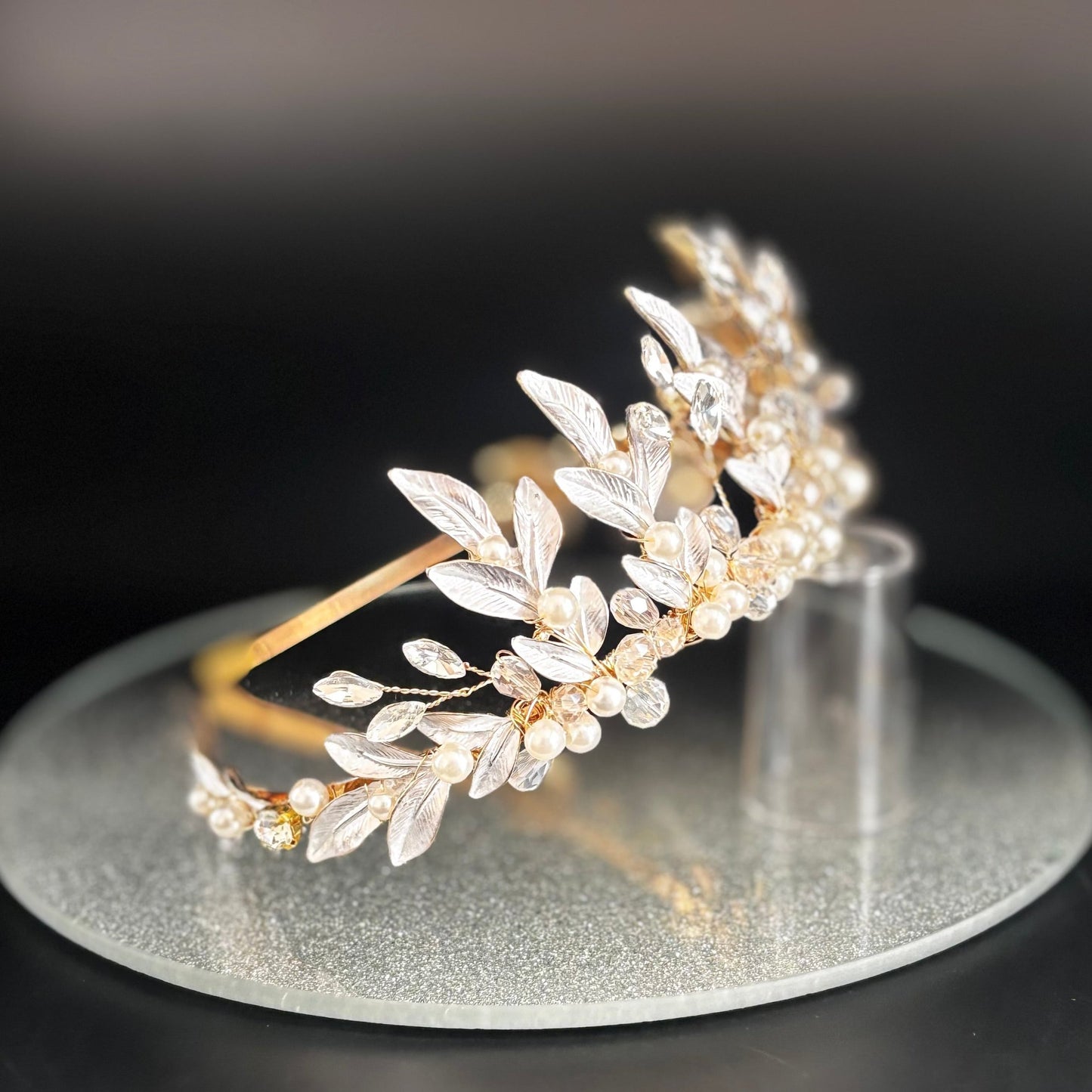 Add Gold Bridal Headband Embellished with Leaves, Crystals & Pearls, TT1054 to the cart