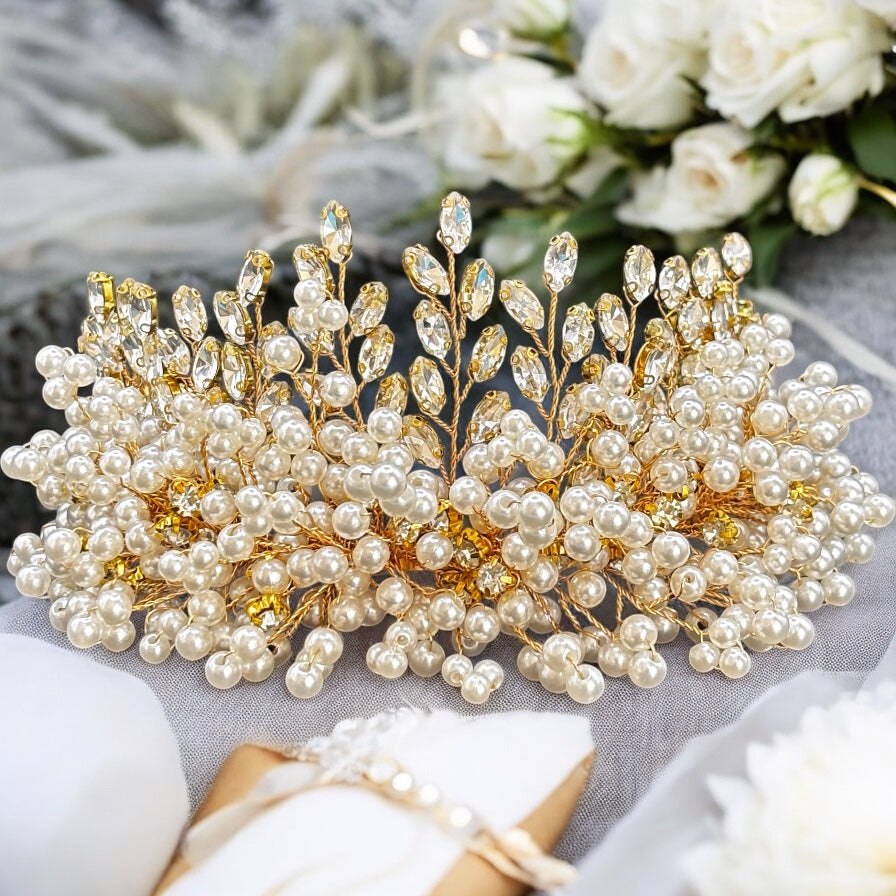 Add Gold Bridal Headpiece with Crystals & Pearls, TT1069 to the cart