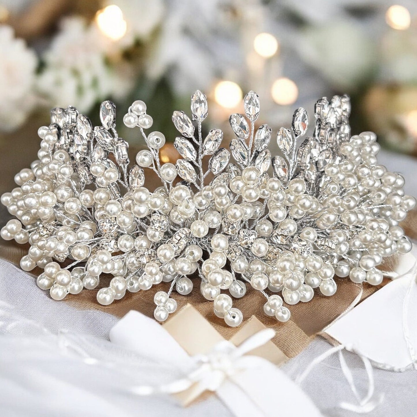 Add Silver Bridal Headpiece with Crystals & Pearls, TT1070 to the cart