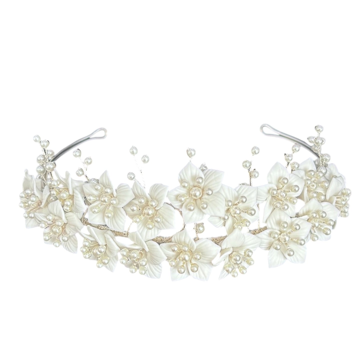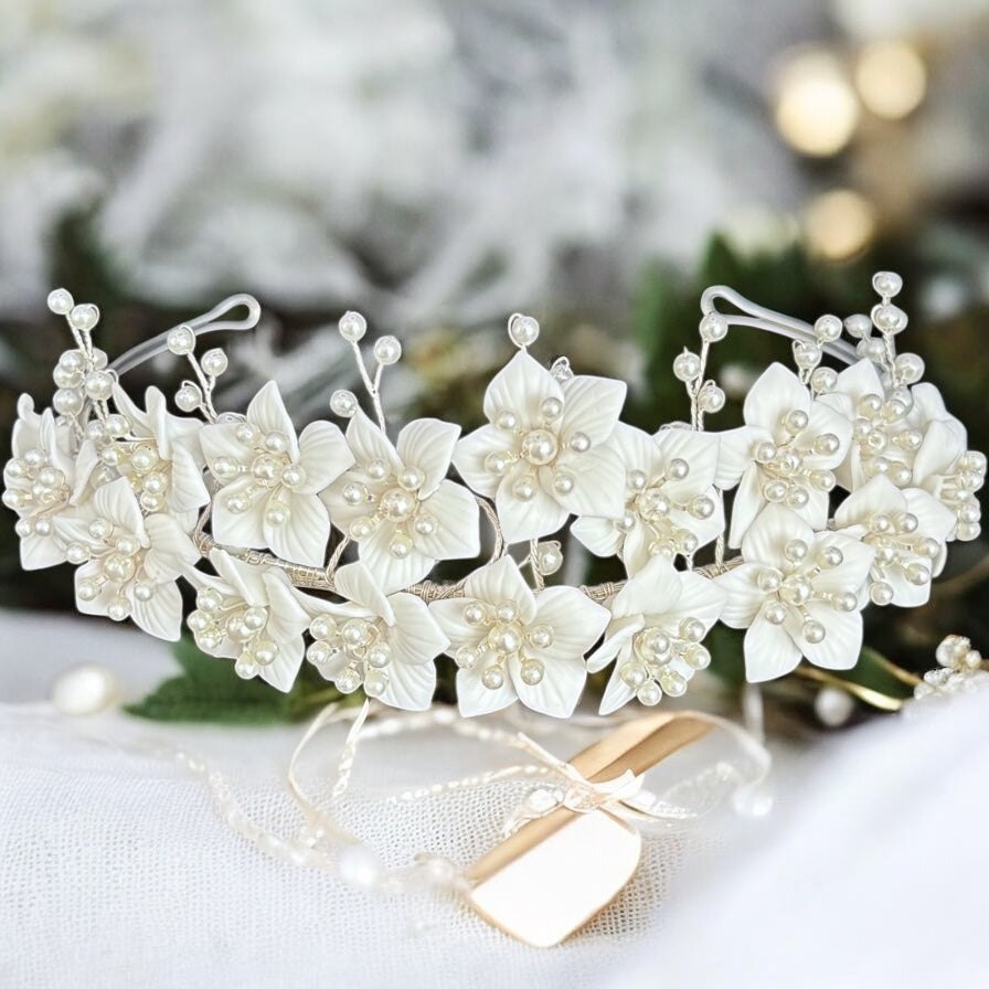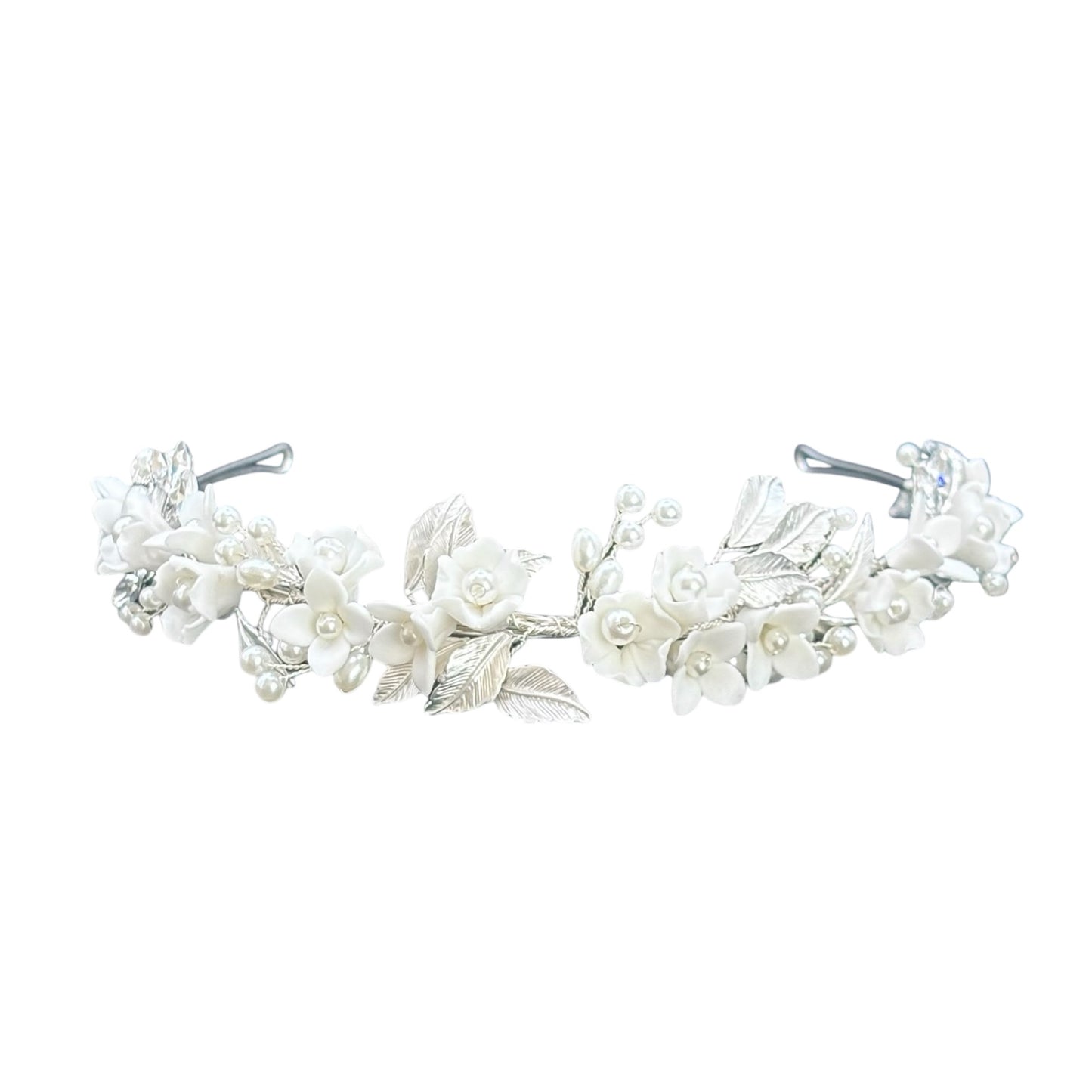 Add Silver Floral Bridal Headpiece with Pearls TT1068 to the cart