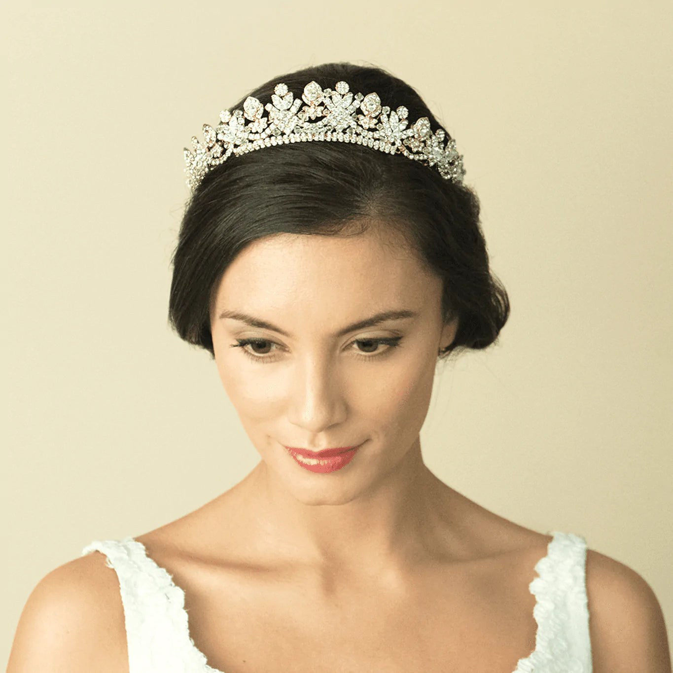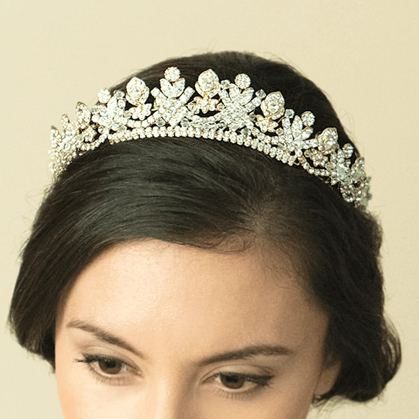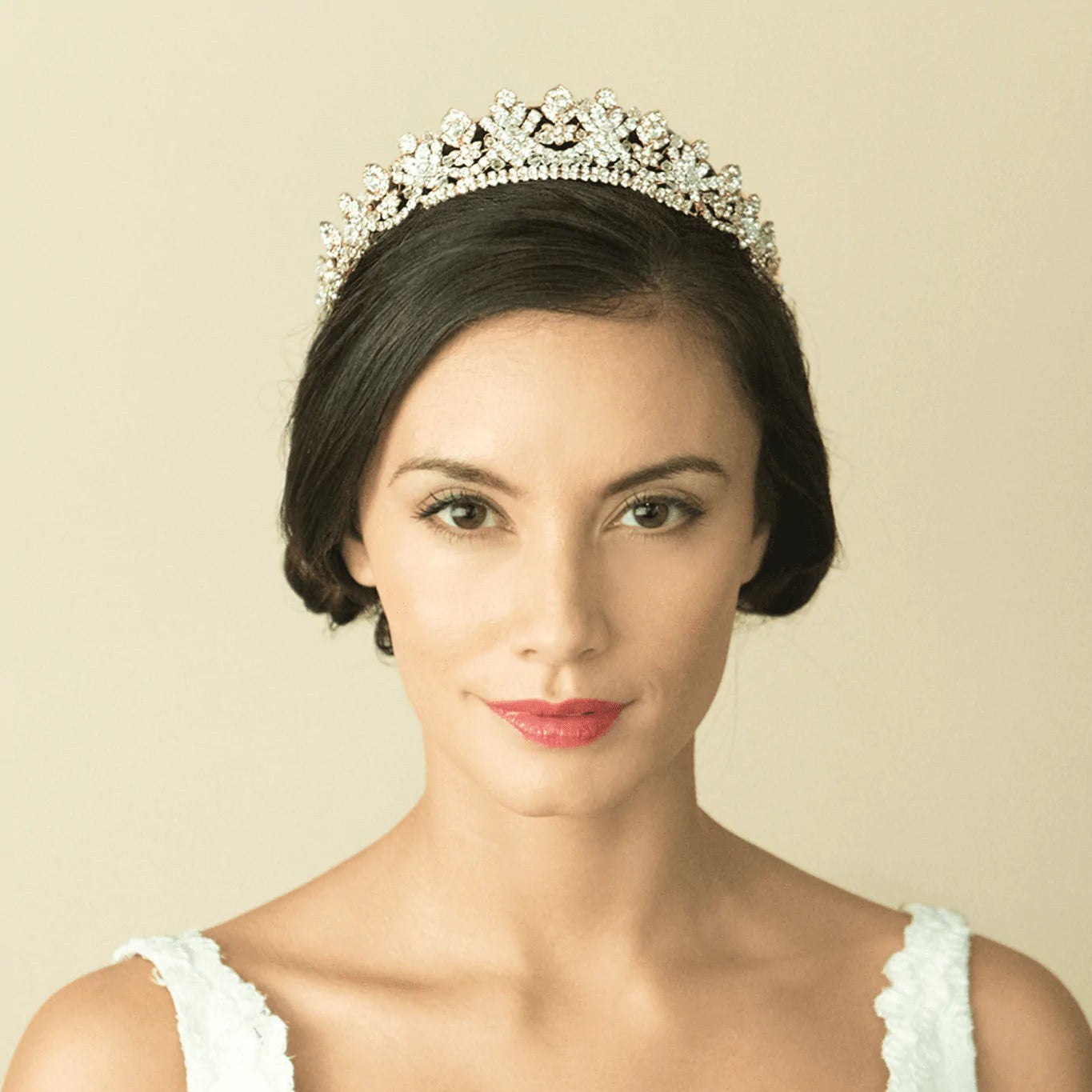 Francesca Bridal tiara crown is a beautiful headpiece fit for a Royal. Set with brilliant cut solitaire crystals and marquise stones fashioned into crown-like silhouette. This truly is a regal opulent tiara to complete the Royal look you’ve always dreamed of.