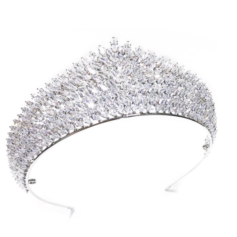 Become a Regal queen of radiance with this beautiful crystal wedding tiara. Emulate the legendary queens of beauty and allow exquisite crystal work to bring fire and radiance to your bridal look. This beautiful wedding tiara has a single row of brilliant cut crystals and crystal starbursts. This is truly an intricate and highly detailed Bridal headpiece, perfectly balanced by clever use of crystal cut and size, that will elevate your look from the mundane to the simply magical.