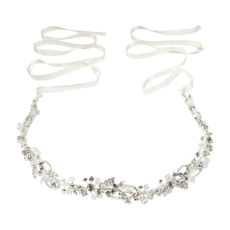 This elegant Silver Sparkle Wedding Hair Vine is a vintage-inspired accessory, meticulously crafted with high-quality clear crystals set on a refined silver finish. Its delicate design captures light beautifully, adding a subtle yet enchanting shimmer to your bridal hairstyle. The hair vine is thoughtfully completed with an ivory satin ribbon, allowing you the versatility to wear it gracefully with or without the ribbon to suit your personal style. Perfect for adding a touch of timeless sophistication to your special day, this piece complements both classic and modern wedding looks.