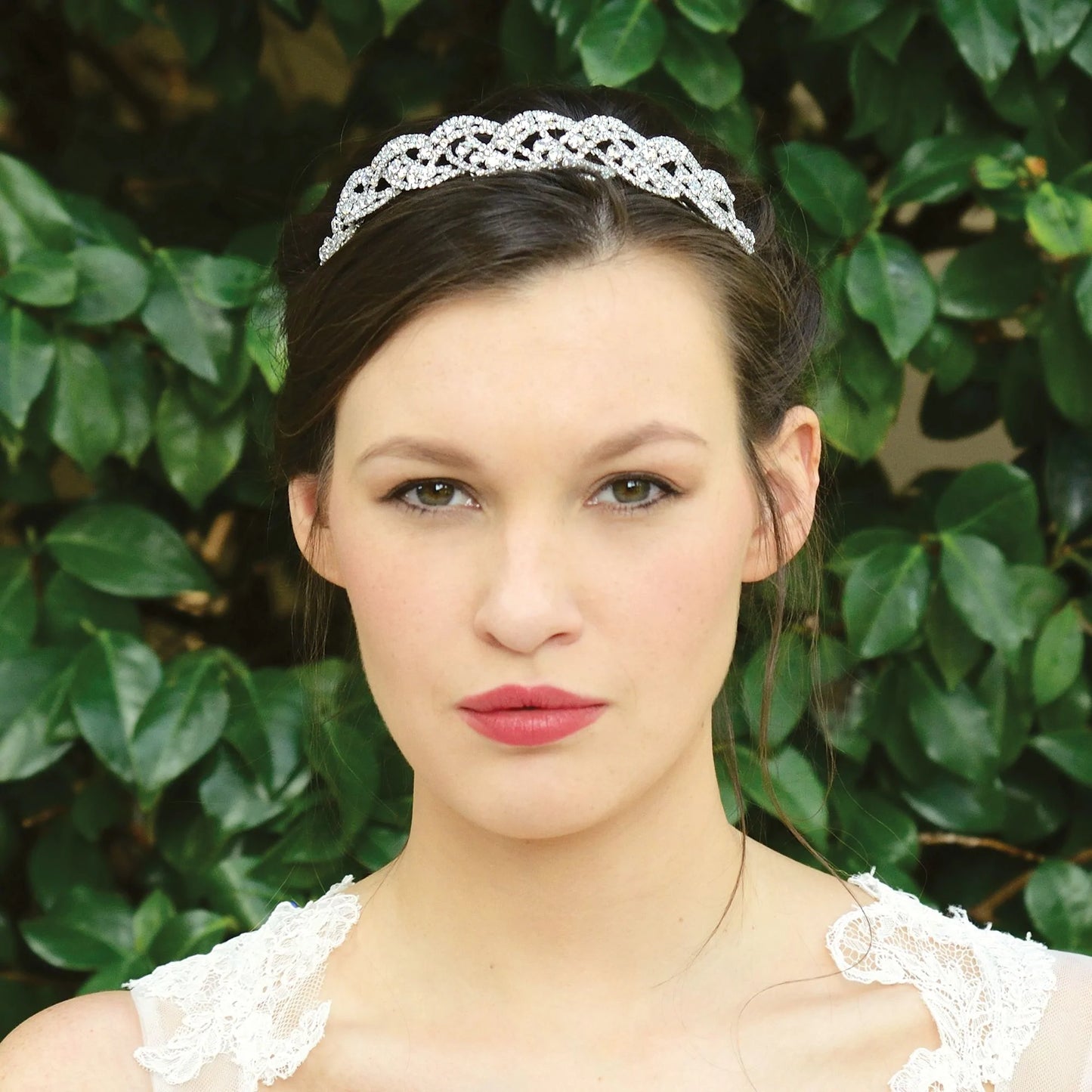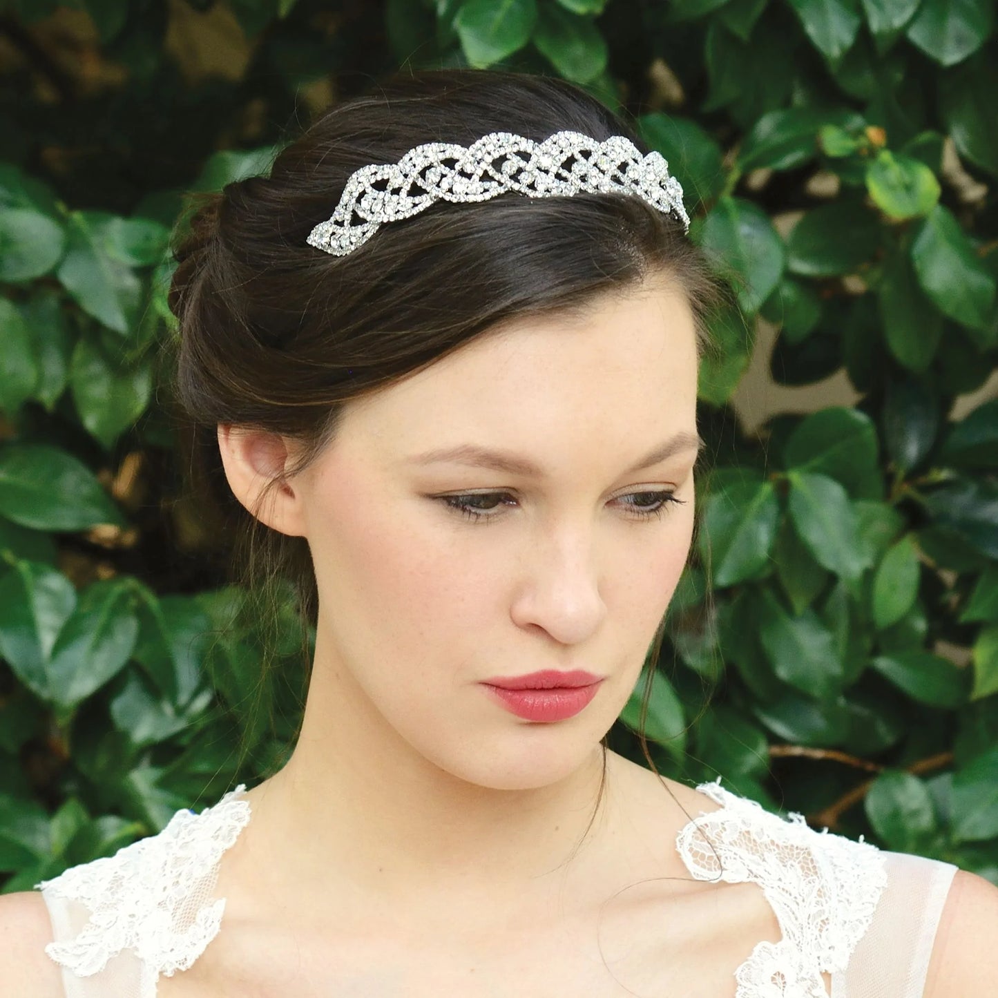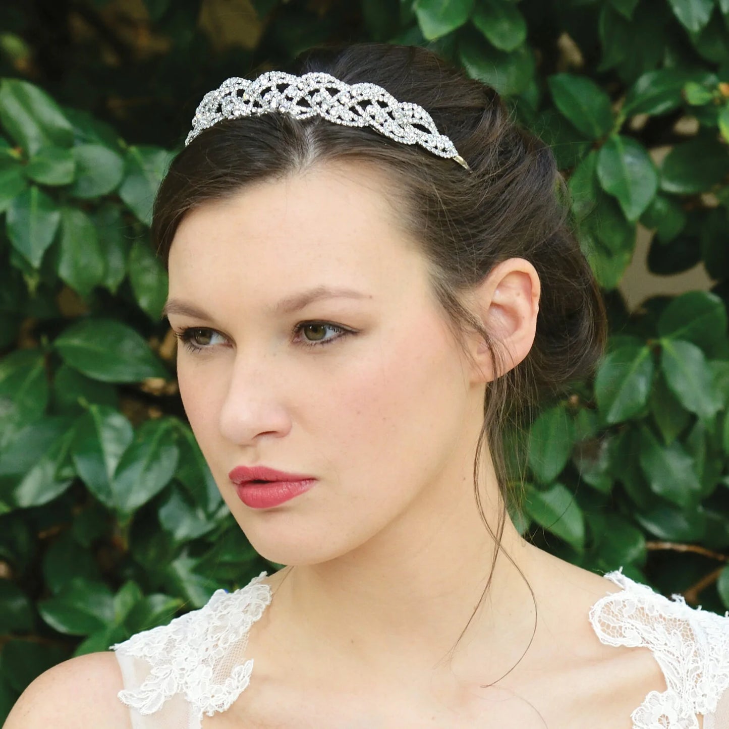 Jenna wedding tiara certainly is a stunning sparkling headpiece. Cut solitaire stones in varying sizes make up the Art Deco style. This beautiful bridal headband can be worn high as a tiara around a bun or updo, or flat on the head as an alice band. This headdress is a classic design and will add plenty of sparkle to your wedding day look, but would particularly complement a Grecian style or chic 1920’s style gowns as well.