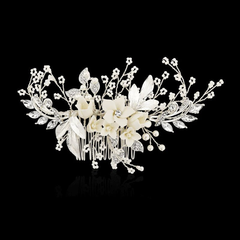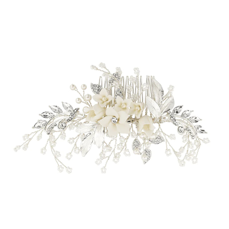 Brides Silver Floral Hair Comb with Crystal and Pearls, A1940