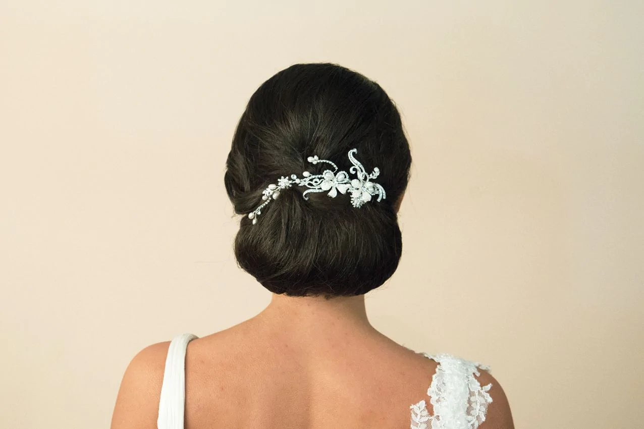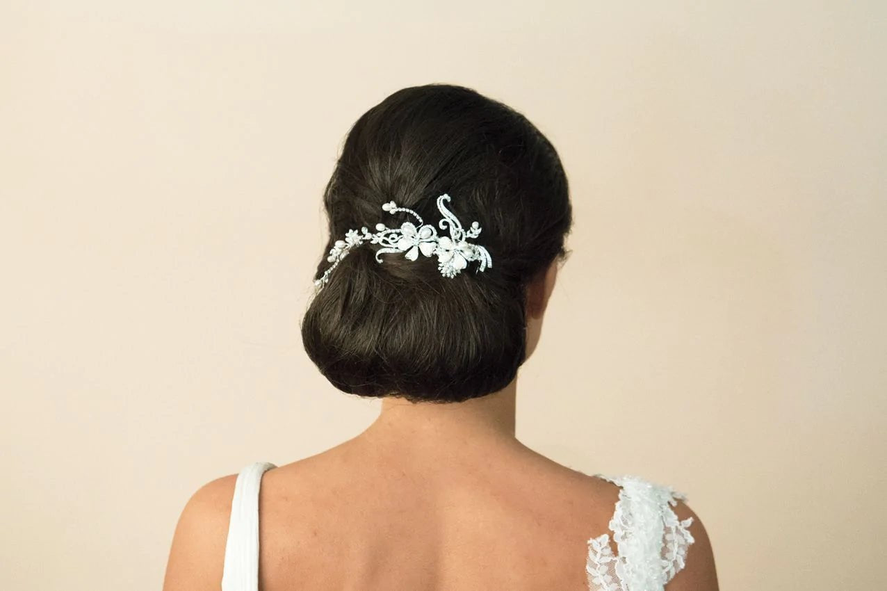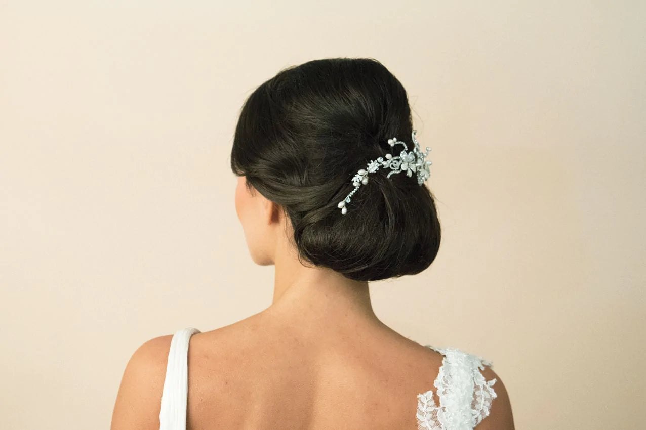 Silver Crystal Hair Comb By Ivory & Co, SILVER PEARL SCROLL