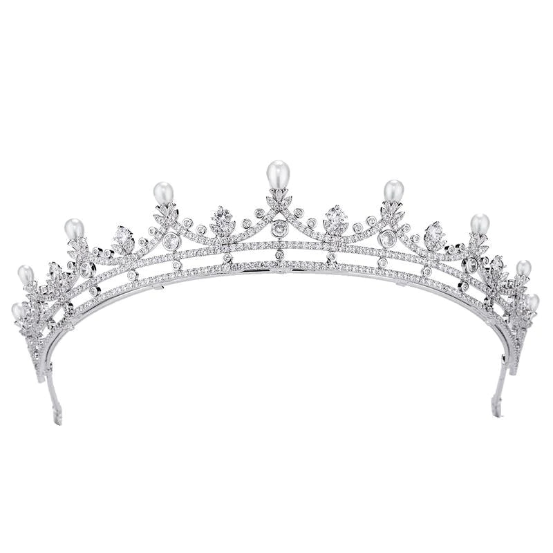 Brides Crystal and Pearl Wedding Tiara, Silver, 7438