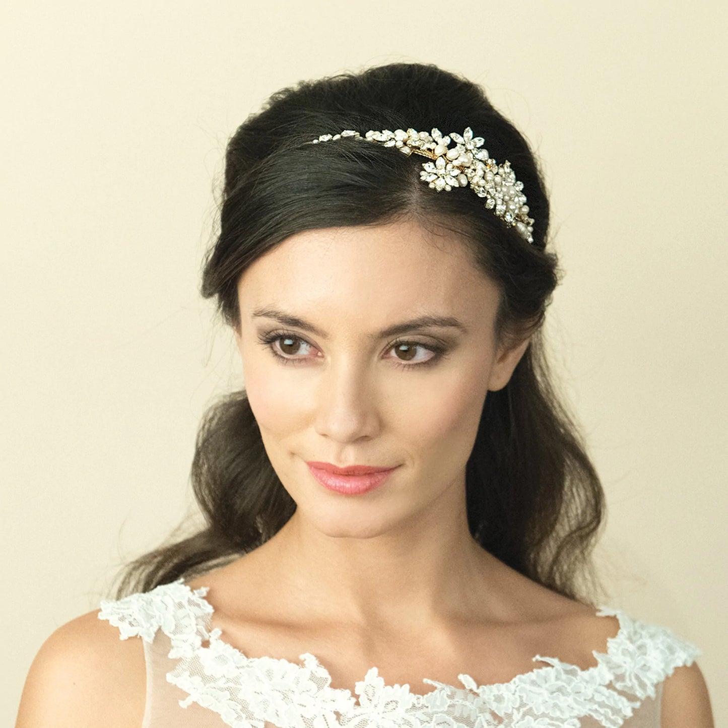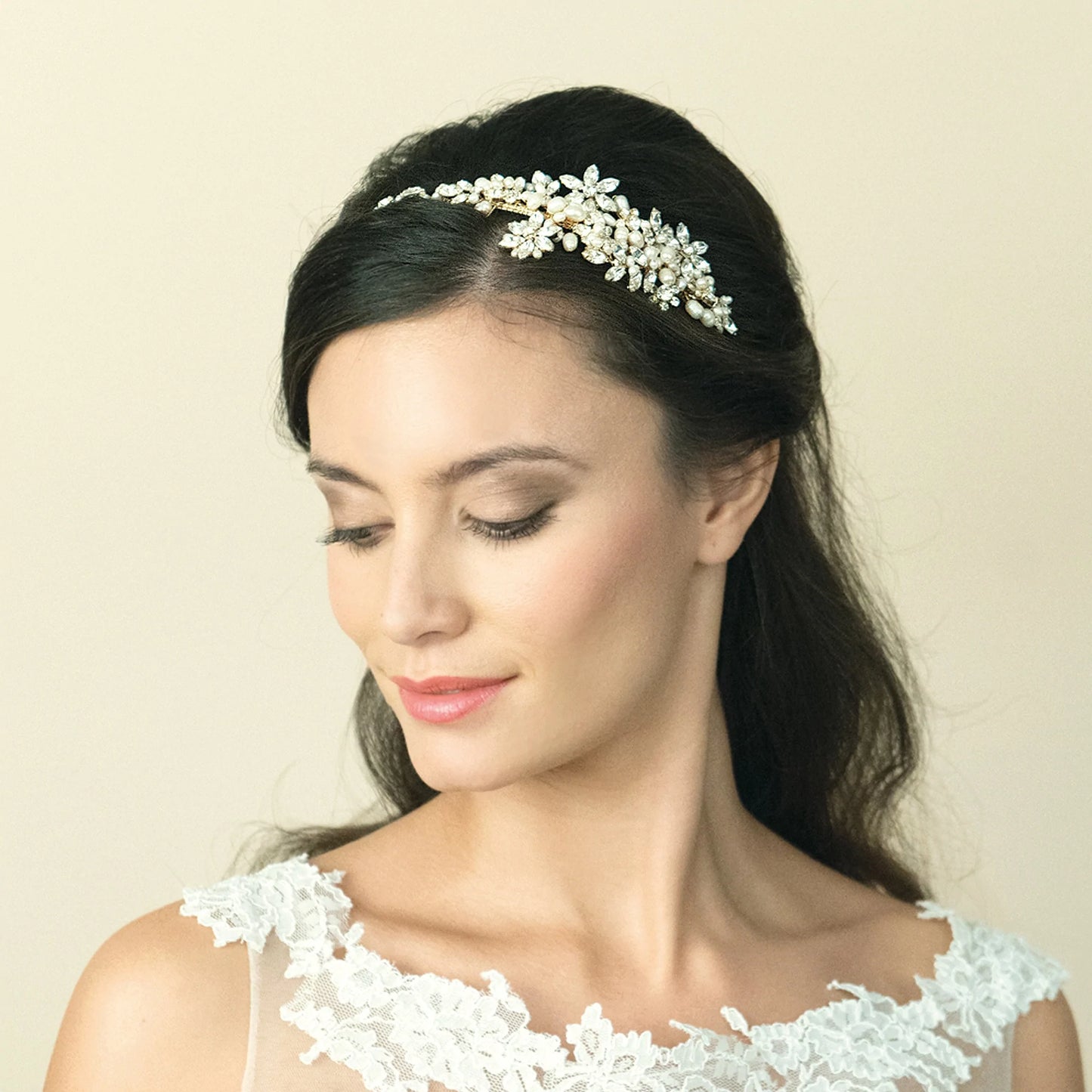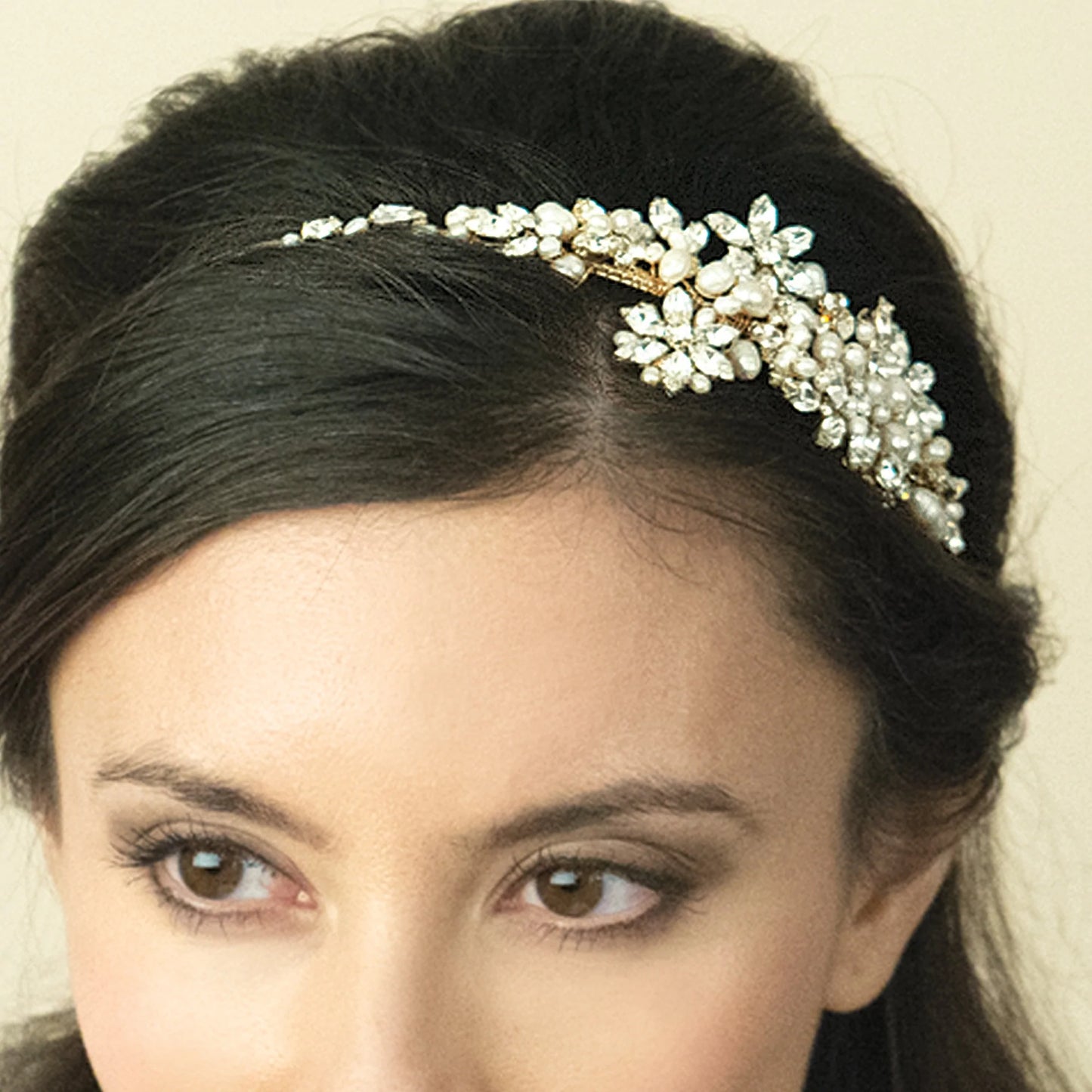 Gold Bridal Headband with Crystals and Pearls, SAFIYA