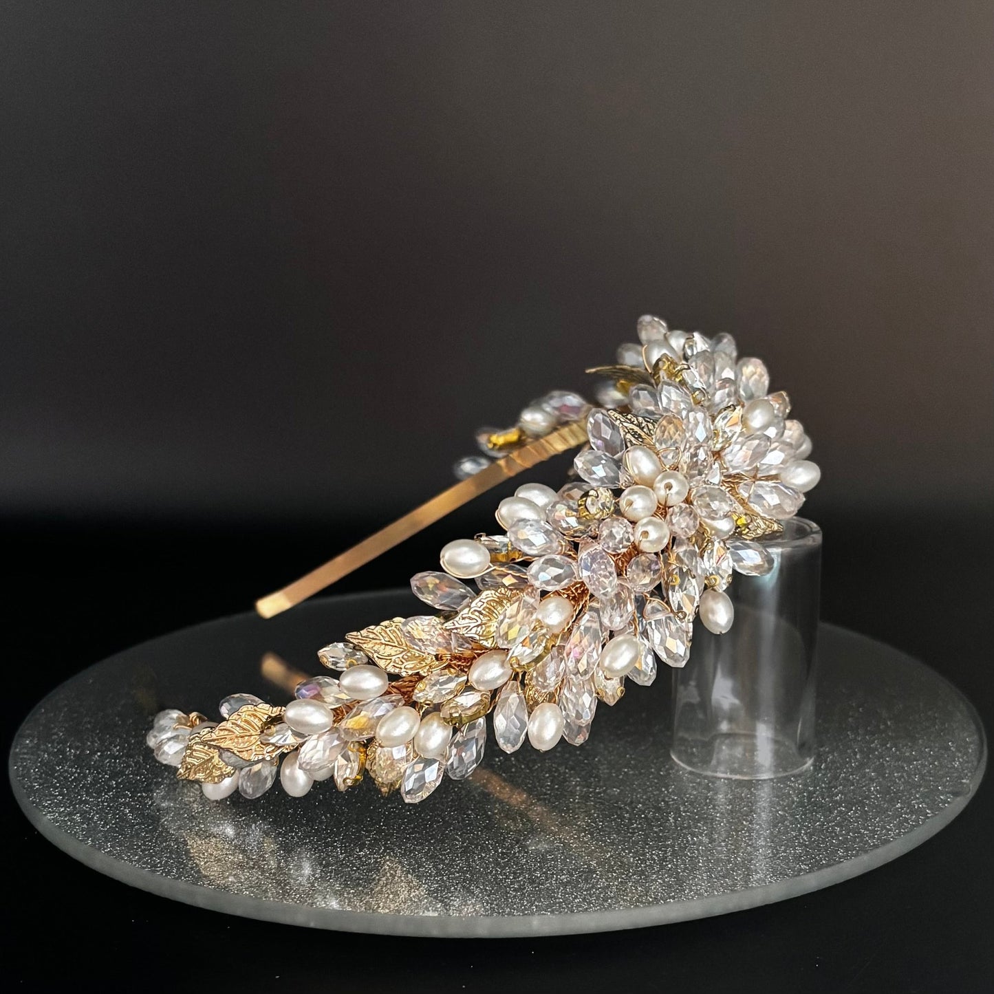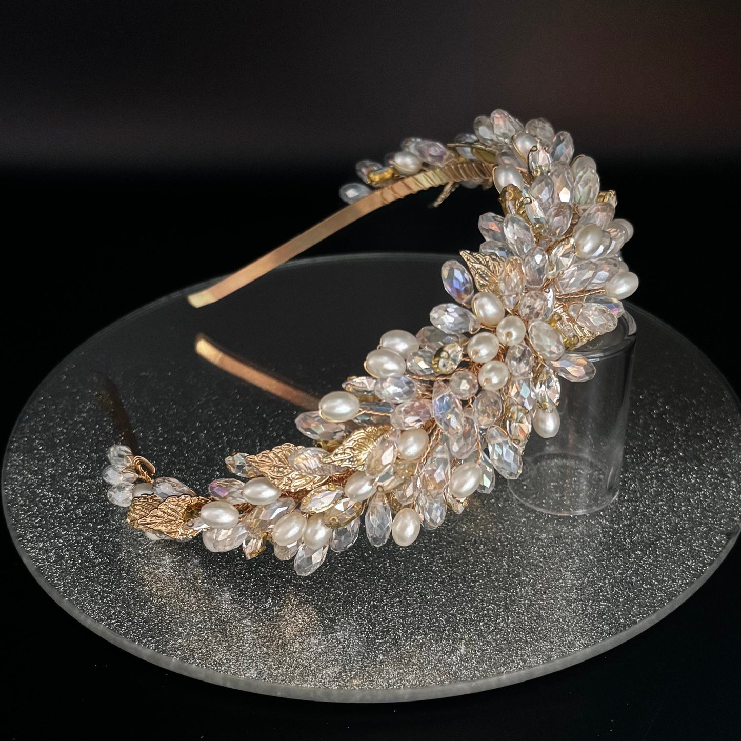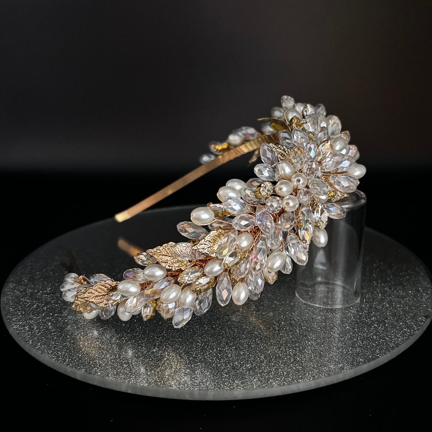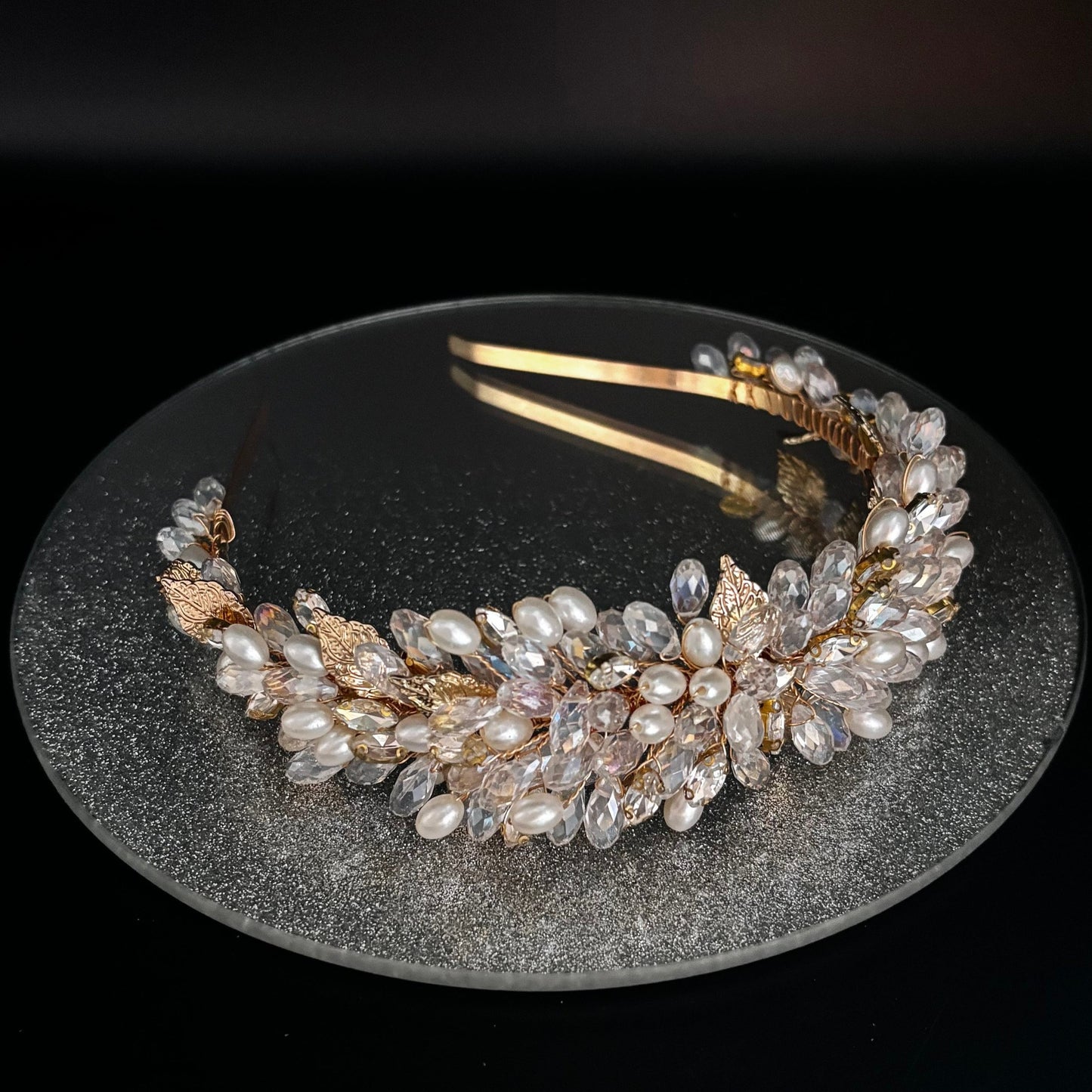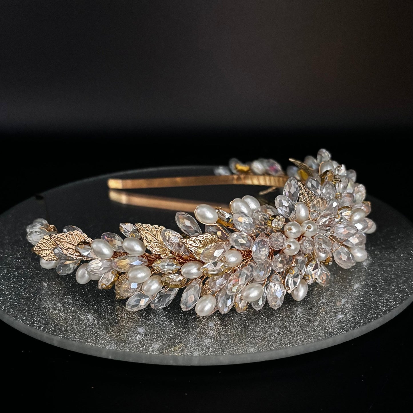 Gold Bridal Headband Embellished with Crystals & Pearls TT1030