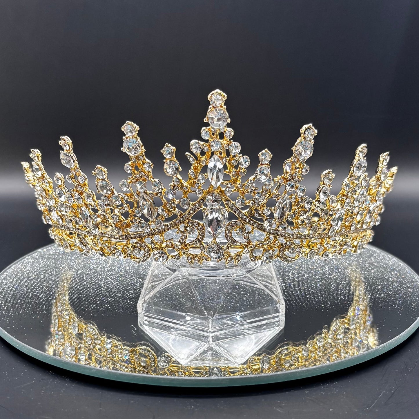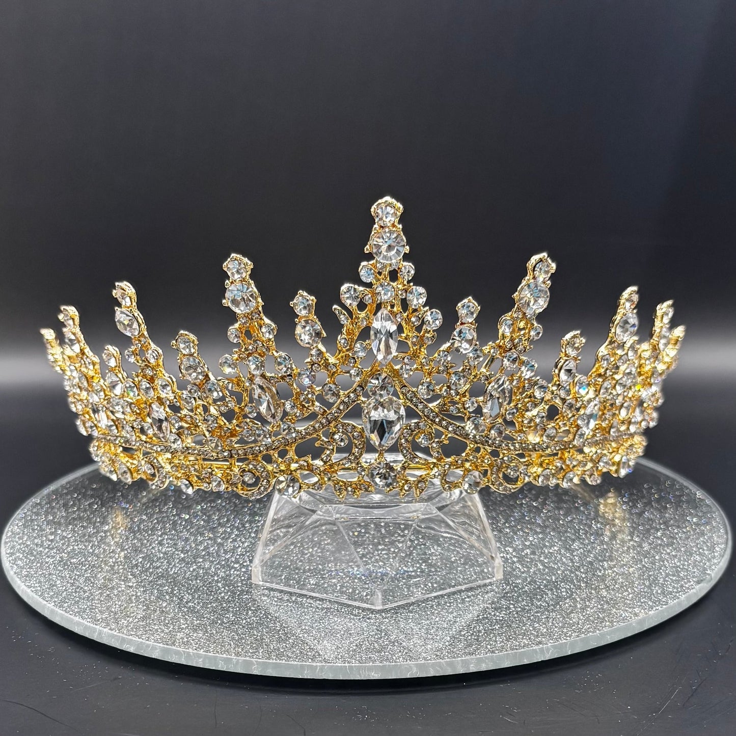 Gold Crystal Wedding Tiara, Bridal Headdress TT1019