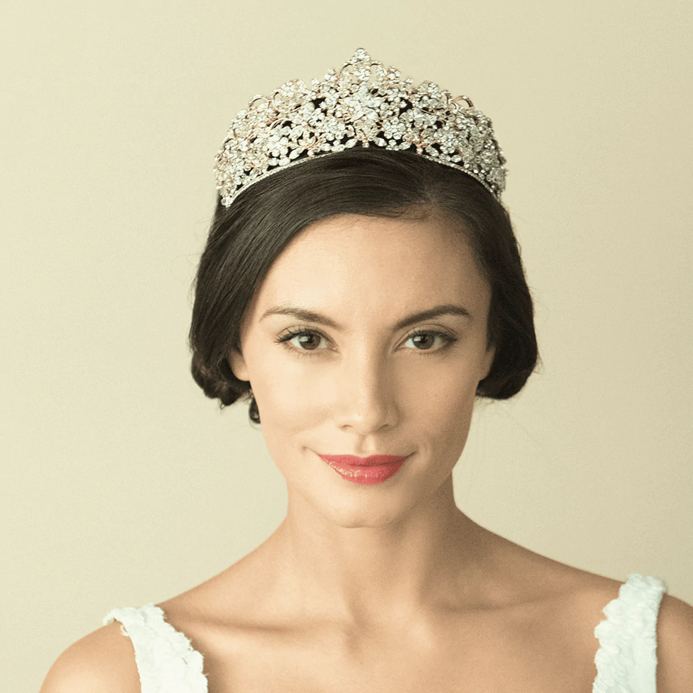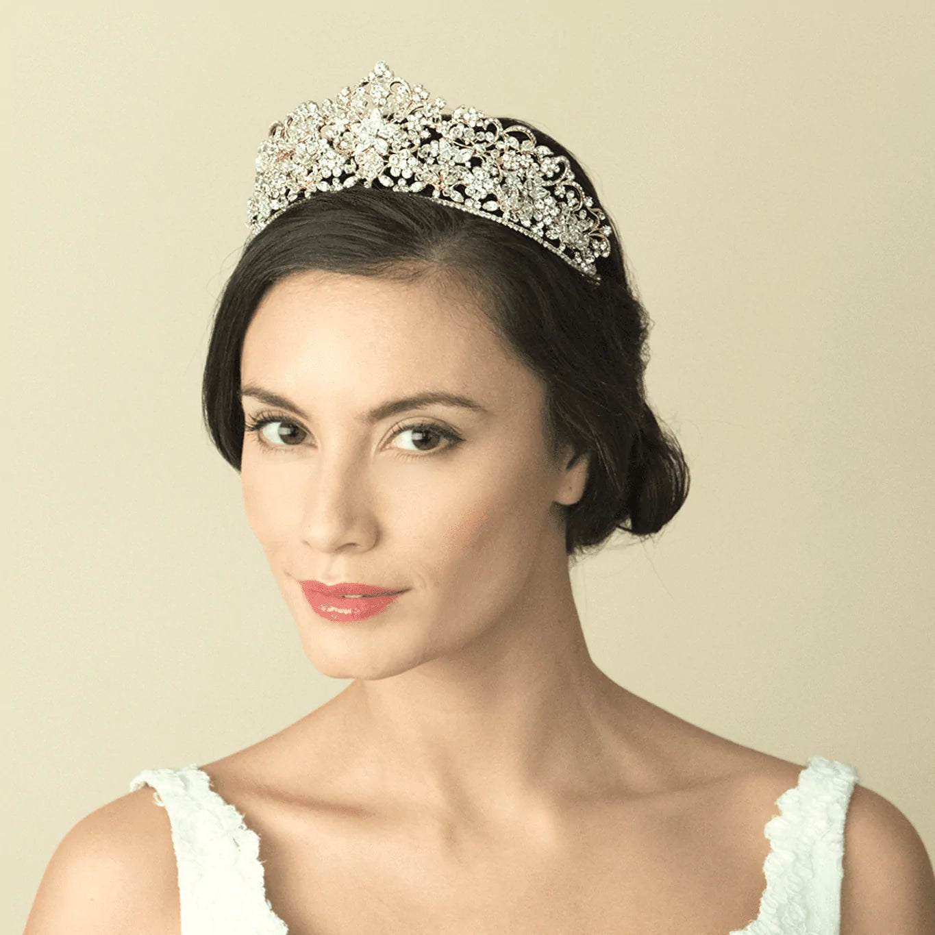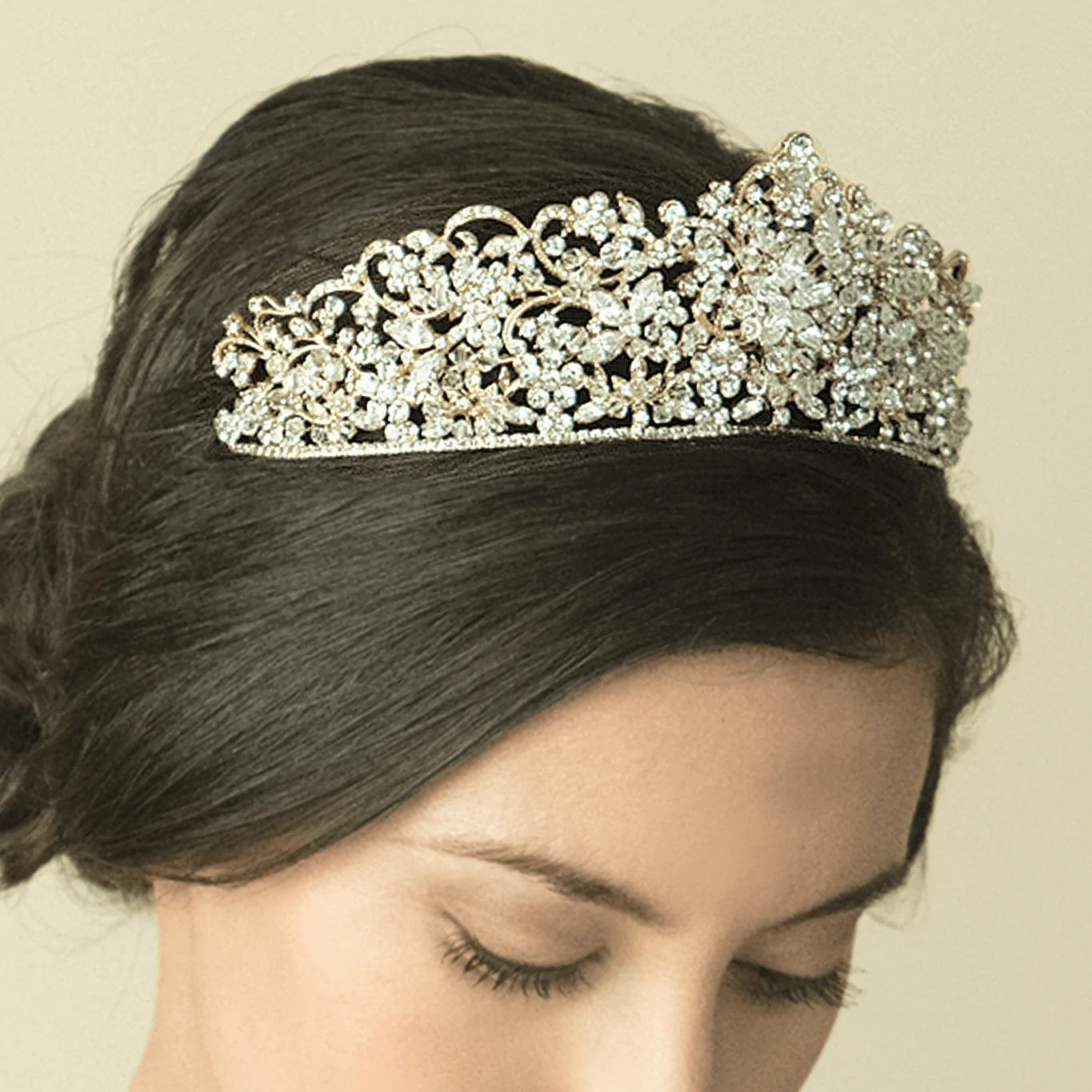 This grand regal bridal tiara is just stunning and fit for a Royal and would add the real wow factor to your beautiful wedding gown. This beautiful bridal headdress has been created using an array of brilliant stones in cut marquise and solitaires, forming intertwined flowers and leaves. Such a wonderful bridal headpiece for brides wanting to make a dramatic statement.