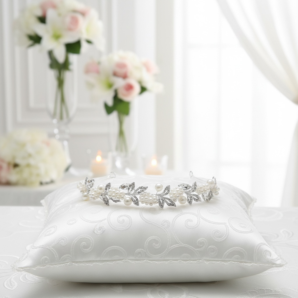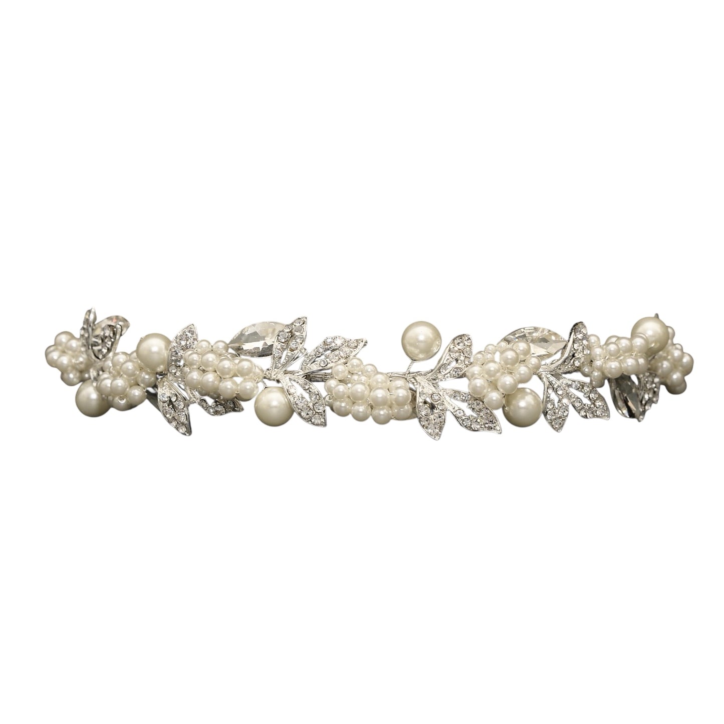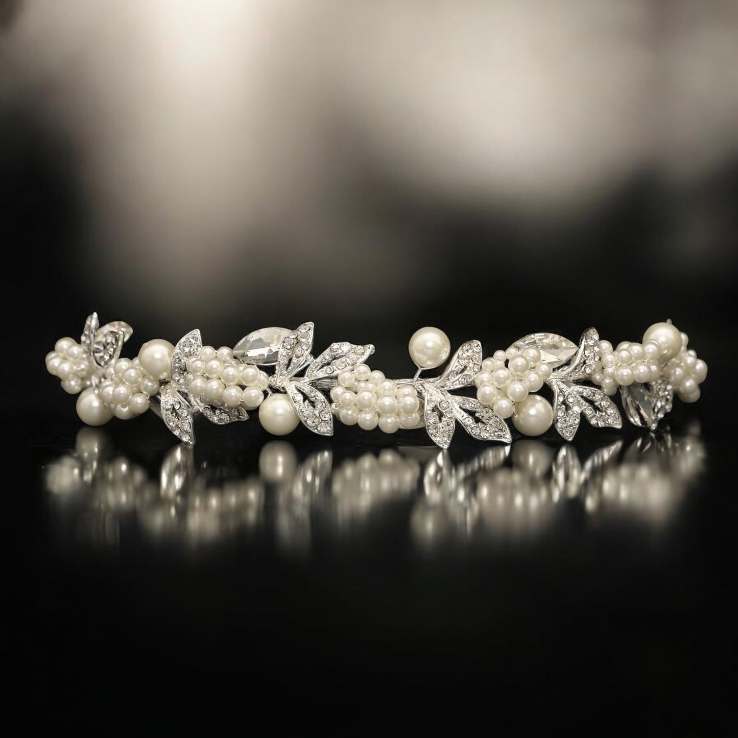 Pearl & Crystal Leaf Bridal Headband – Elegant Silver Wedding Headpiece TLT4715 - Topknot Tiaras & Veils