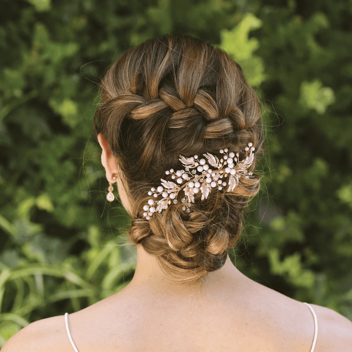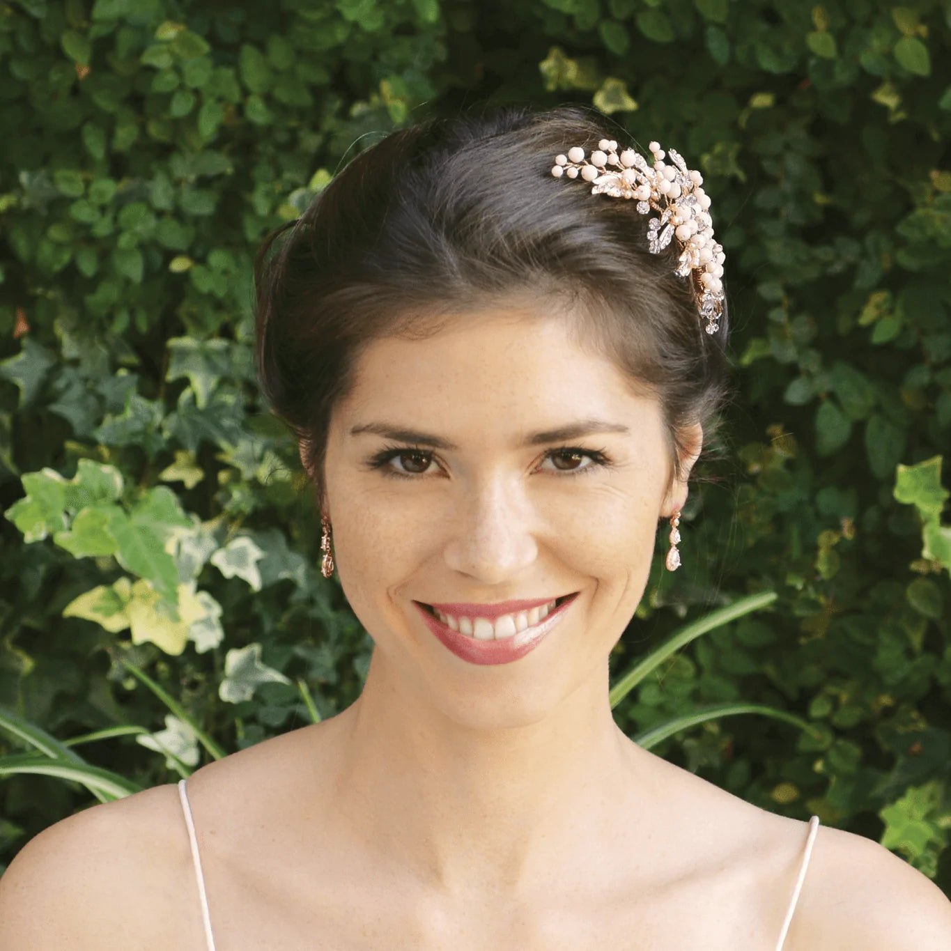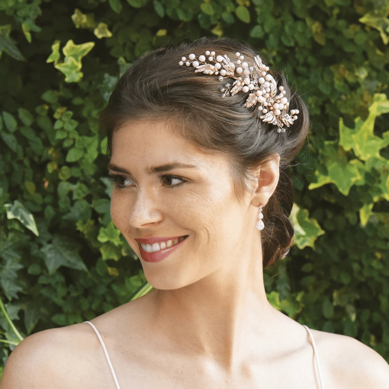Rose Gold Bridal Hair Comb with Crystals & Blush Pearls, Peasblossom