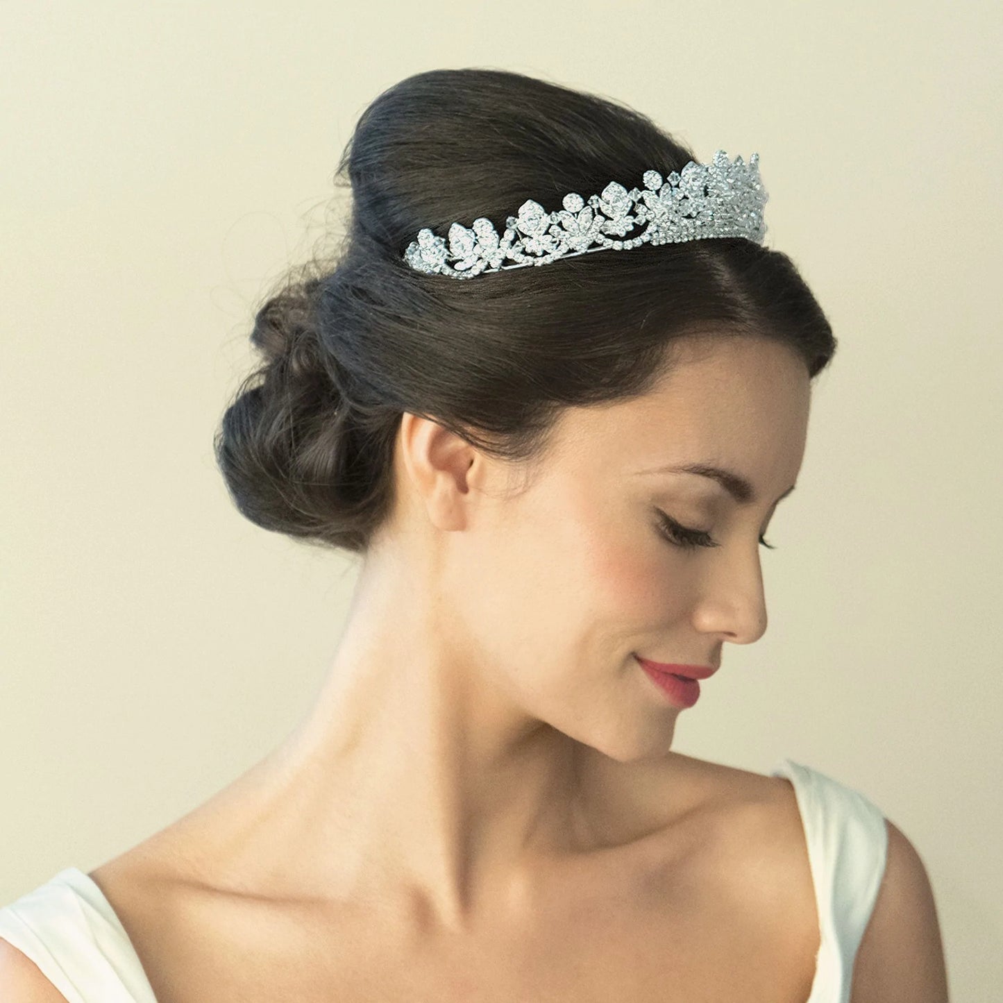 Silver Bridal Tiara Embellished with Crystals, ALEXANDRA