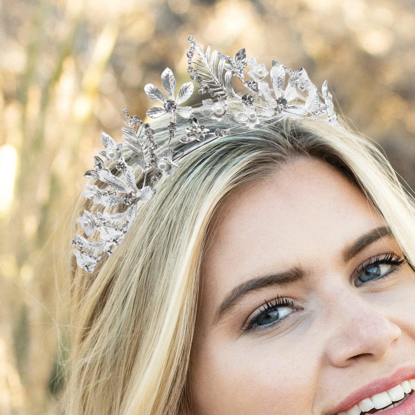 Silver Bridal Tiara Crystals and Pearls, Aubrey