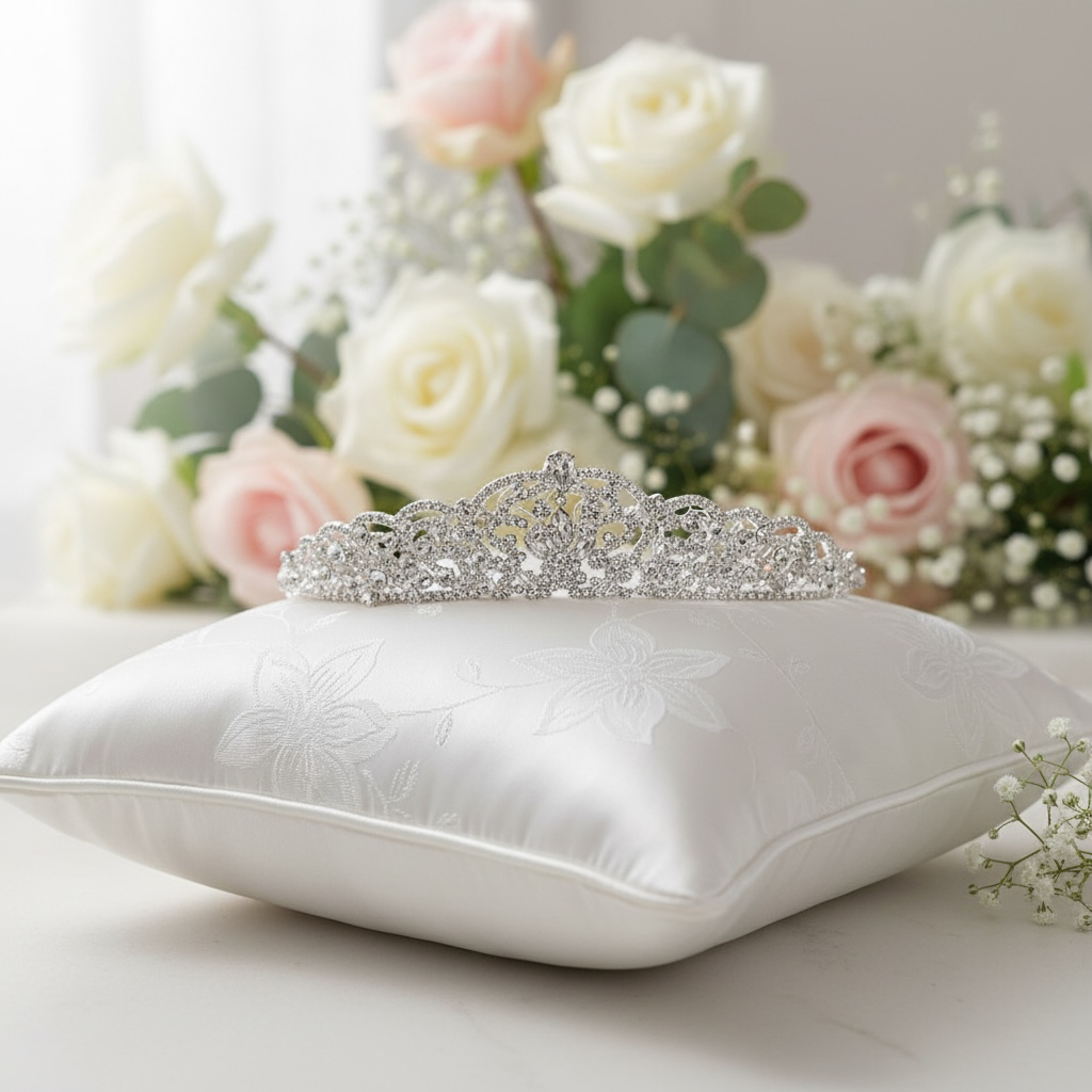 Silver Wedding Tiara Embellished with Crystals & Diamantes TLT4520