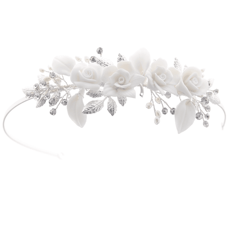 Add Silver Floral Bridal Headband with Crystals and Pearls, 9693 to the cart
