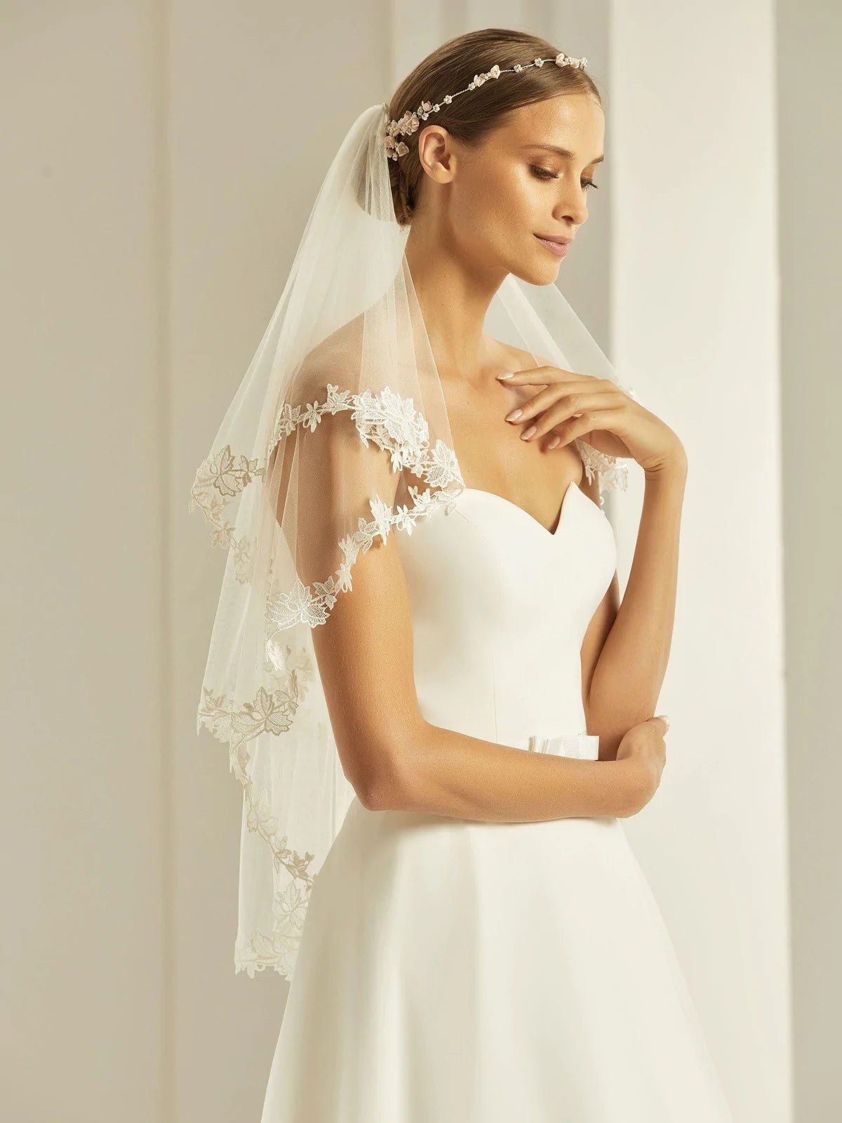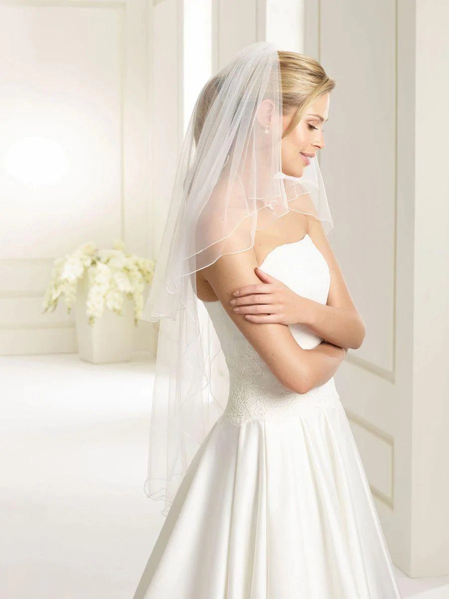 Chic and versatile, our hip-length wedding veil is the perfect blend of modern elegance and classic romance. Falling gracefully to the hips, this veil beautifully frames your gown while adding just the right amount of length and movement. Designed to complement a wide range of dress styles, from sleek and simple to detailed and dramatic, the hip-length veil enhances your bridal look without overshadowing it.