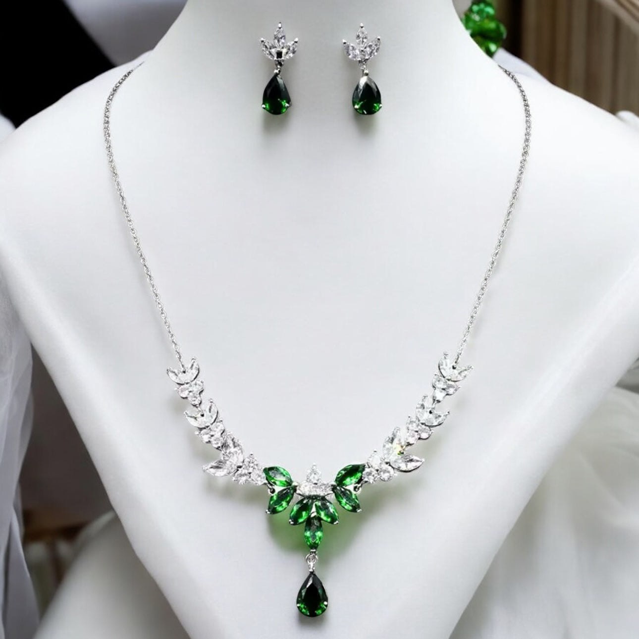 Add Emerald Elegance Bridal Necklace & Earrings Set TT1114 to the cart