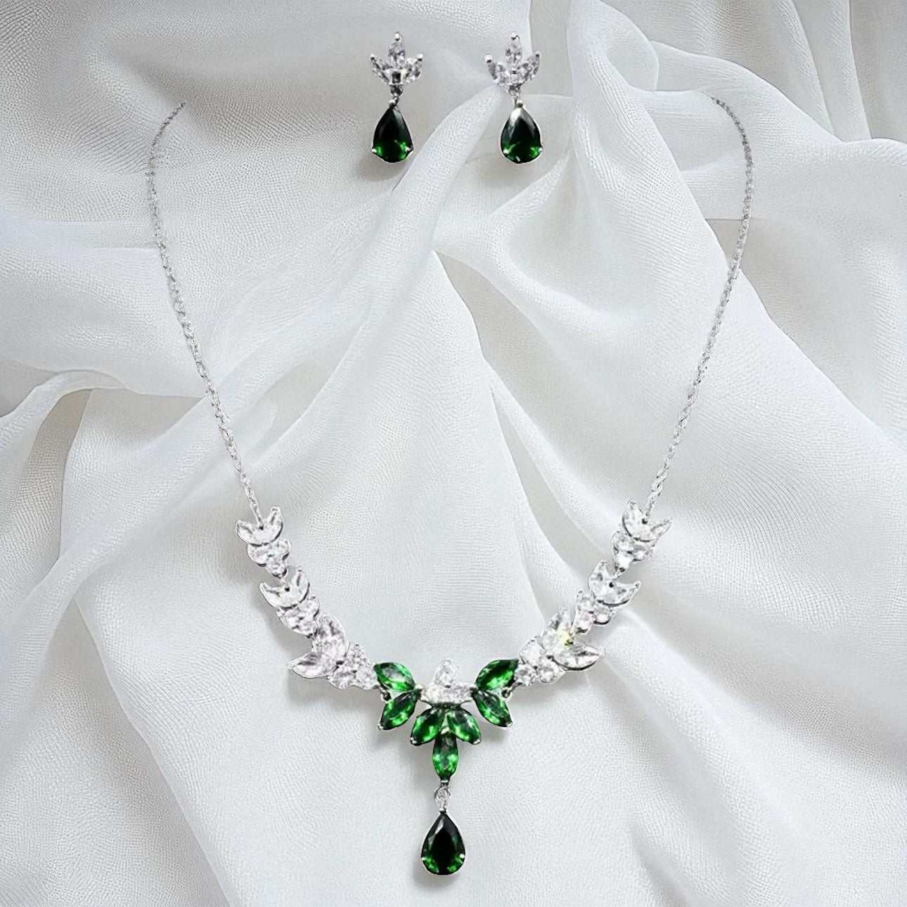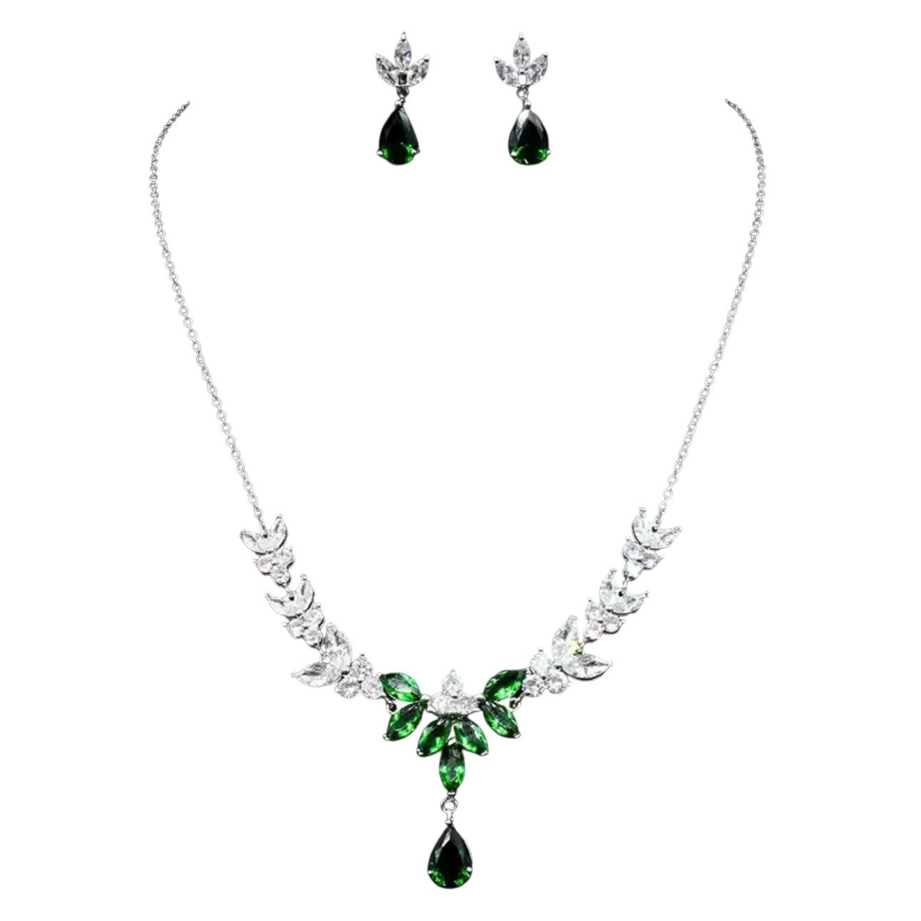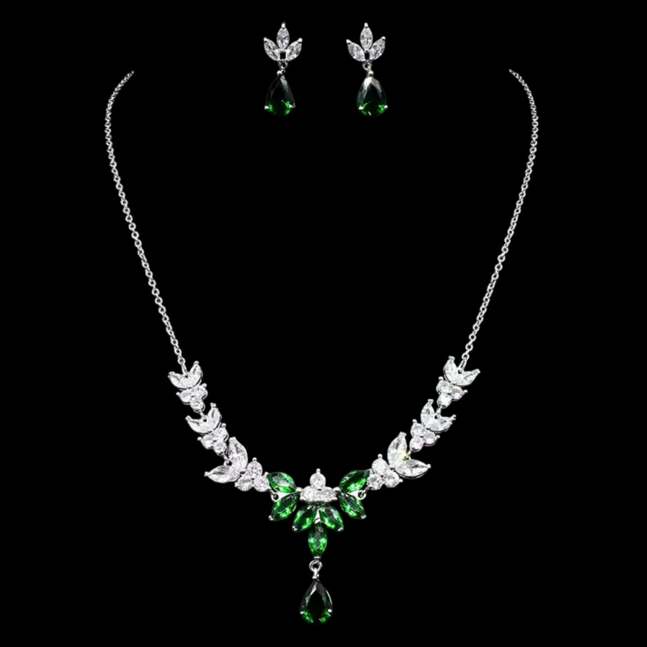 Emerald Elegance Bridal Necklace & Earrings Set TT1114